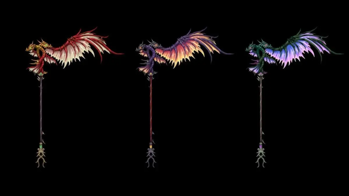 A scythe in a dragon/winged style that comes with two variants.
