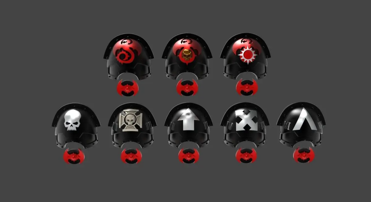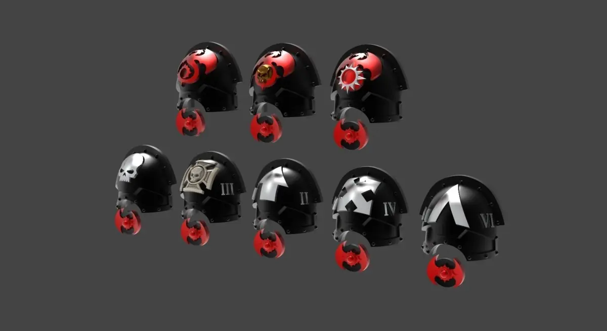 28 Shoulderpads in total plus Elbow Guard!Veterans, Tactical, Assault and Heavy Support Shoulderpads are all numbered from I to VI