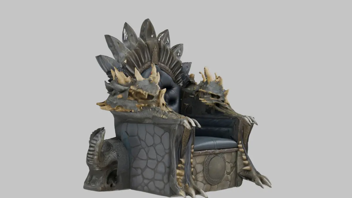 This 3D model is a Dragon Skull Throne, perfect for adding a touch of dark fantasy to your 3D projects. The model is highly detailed and optimized for use in games and other real-time applications. It is available in various formats and is ready to be imported into your favorite 3D software. Add a unique and imposing element to your scenes with this Dragon Skull Throne.