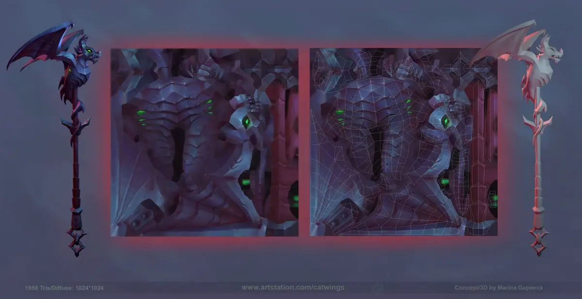 Metal staff with a dragon.Made in a hand-painted technic based on my concepts, from scratch.