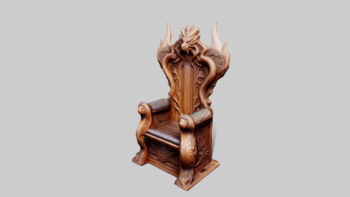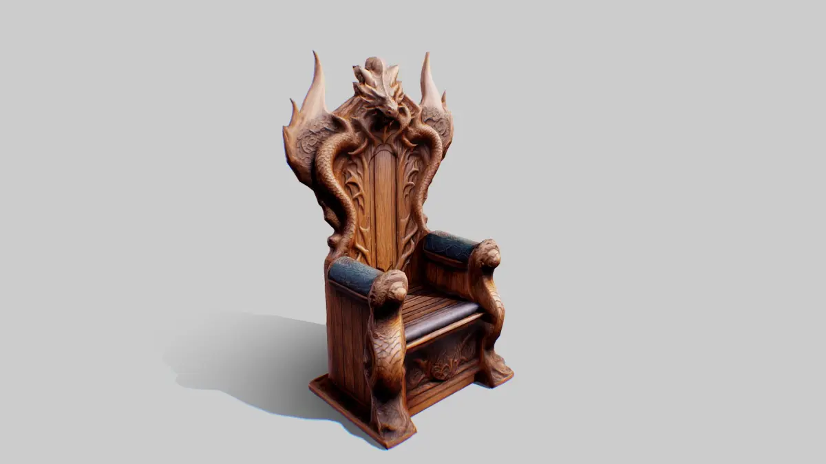 Wooden Dragon throneLowpoly Game-readyIncludes FBX, GLB, OBJ, Blend, USDZ...2K TexturesTriangles: 18.9kVertices: 9.4k