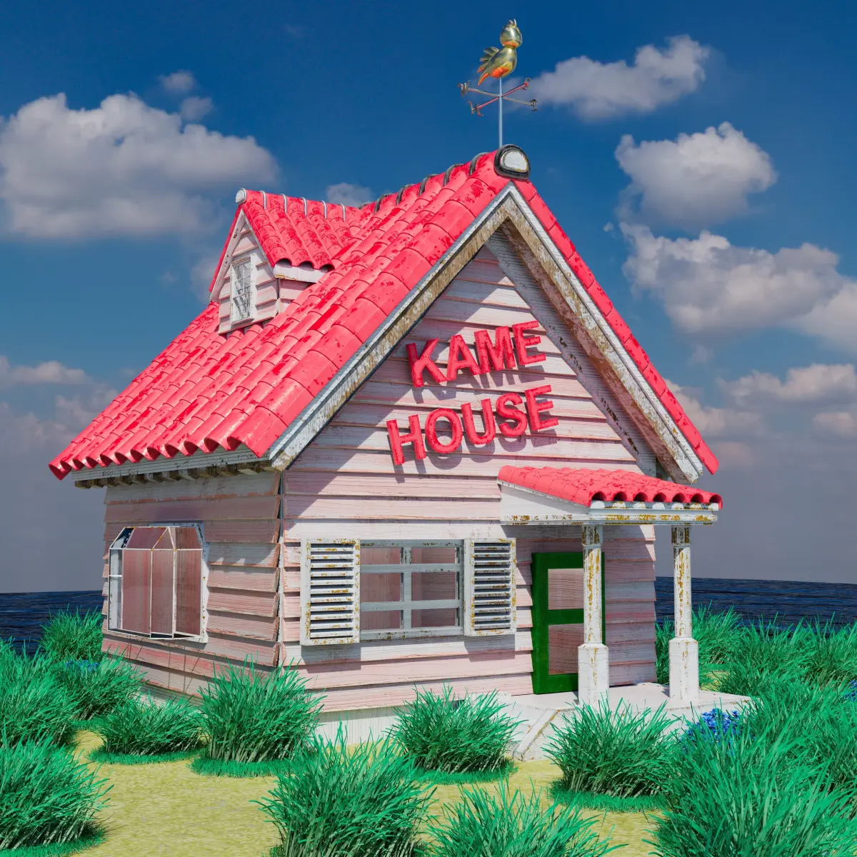 Highly detailed and accurate representation of Kame House, the legendary island dwelling of Master Roshi and his Turtle.Intricate architectural design capturing the unique charm and character of the original Kame House.Immerse yourself in the world of Dragon Ball with meticulously recreated elements, including the distinct red roof, vibrant exterior, and the familiar symbol adorning the front entrance.The model is built to scale, allowing for easy integration into various projects and animations.Carefully optimized geometry and textures ensure efficient rendering and smooth performance.Whether you're a passionate Dragon Ball fan, a 3D artist looking for a captivating environment for your projects, or a game developer in need of a stunning game asset, this Kame House 3D model is perfect for you. Its attention to detail and faithful representation make it an ideal addition to any Dragon Ball-inspired scene or production.