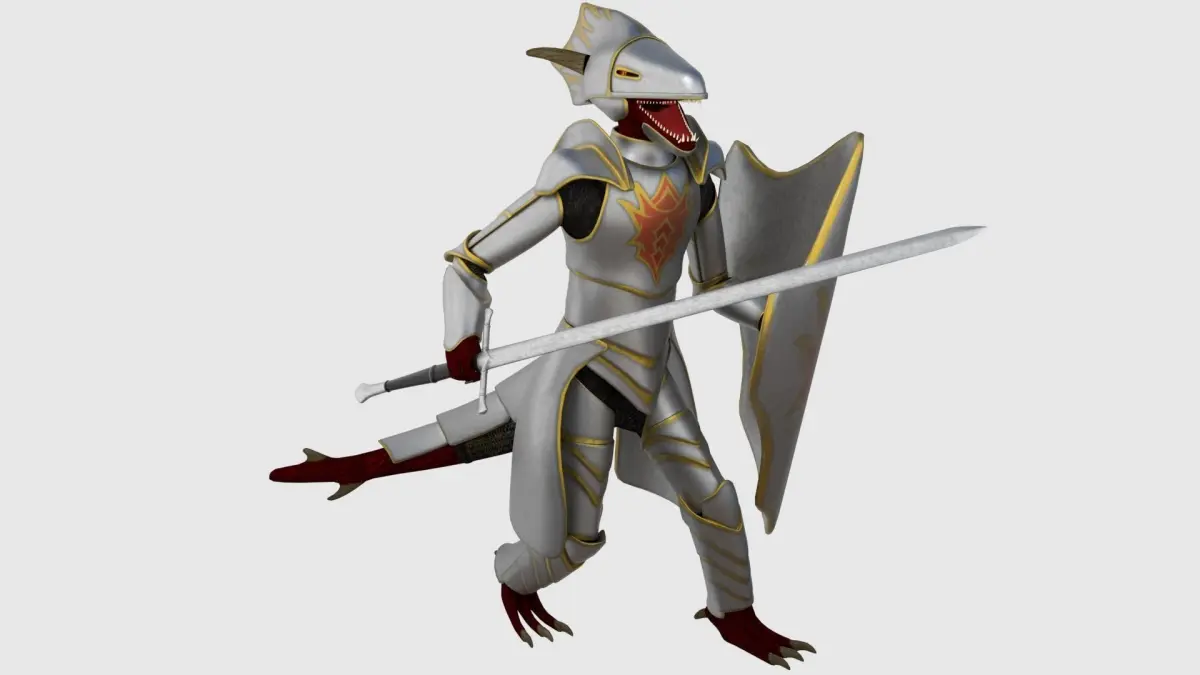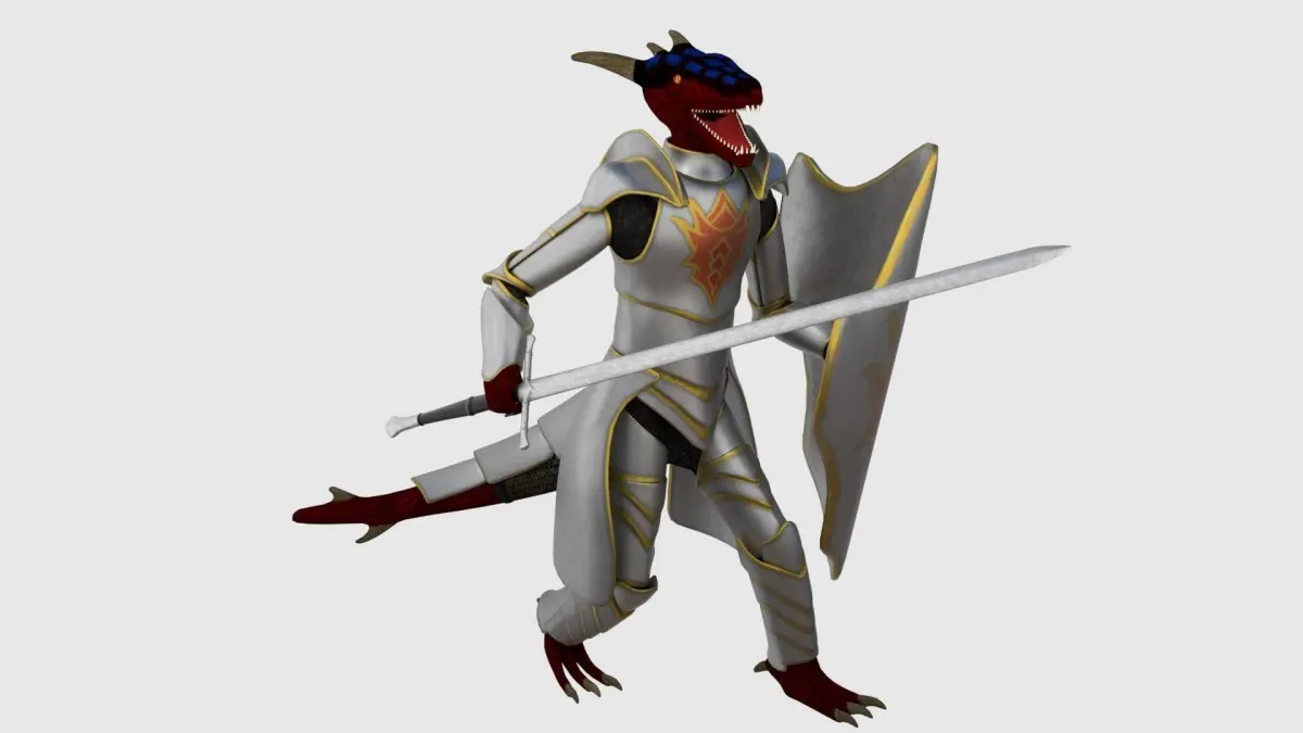 A game ready Dragonborn Character which has been rigged. Made in Blender, rendered with Cycles and tested in Unity game engine.A fantasy humanoid creature with the characteristics of a dragon, reminiscent of something found in Dungeons and Dragons or other fantasy games. This character comes with a complete armour set, a sword and a shield. All of these items can be easily removed from the base mesh for customisation of the character. You can easily subdivide the armour and base mesh for a better look in renders but it still looks great low poly in Unity game engine.