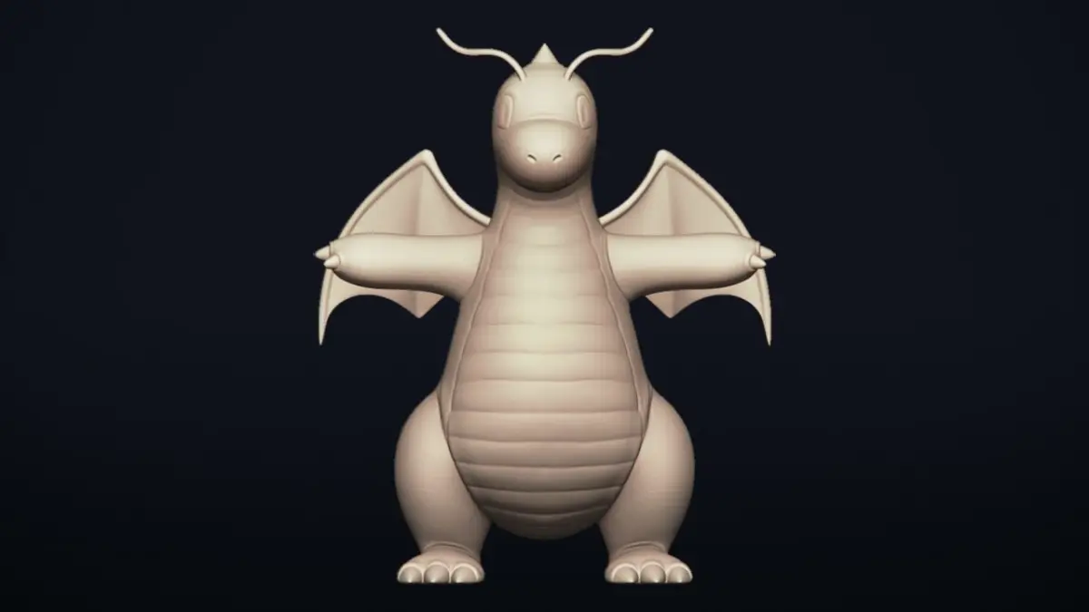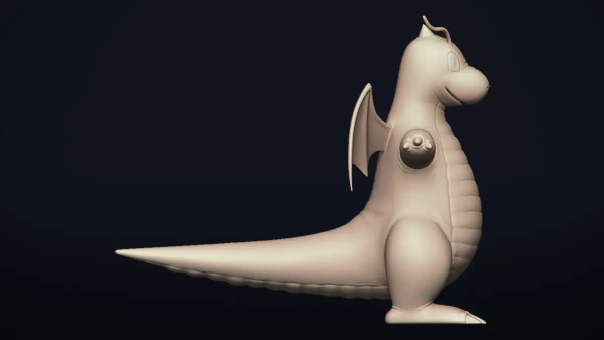 A high detailed 3D sculpture of the famous Dragon-type Pokemon Dragonite designed for 3d printing, Rendering, Cosplay, Character-Design, Jewelry, Design, Furniture, etc.