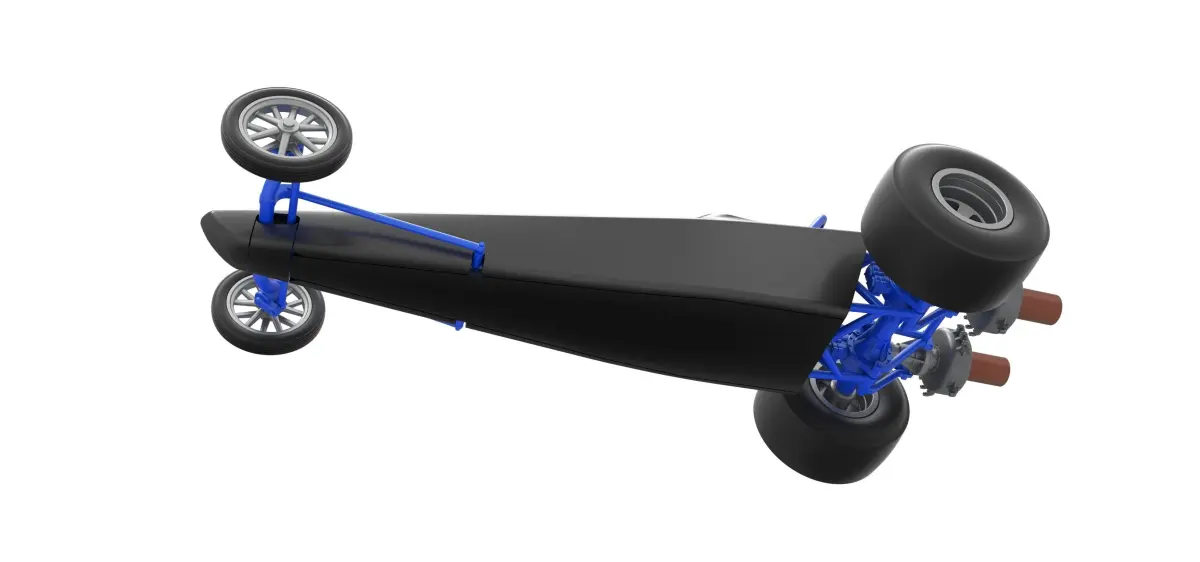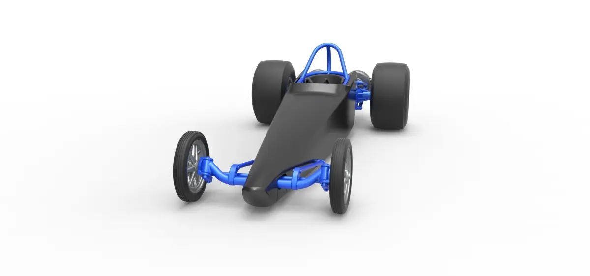 The model consists of parts: Body, Combustion chambers, Exhaust pipes, Front rims, Front tires, Rear rims, Rear tires, Reductors, Seat, Shell part 1-3, Shifter, Steering wheel, Tank.
