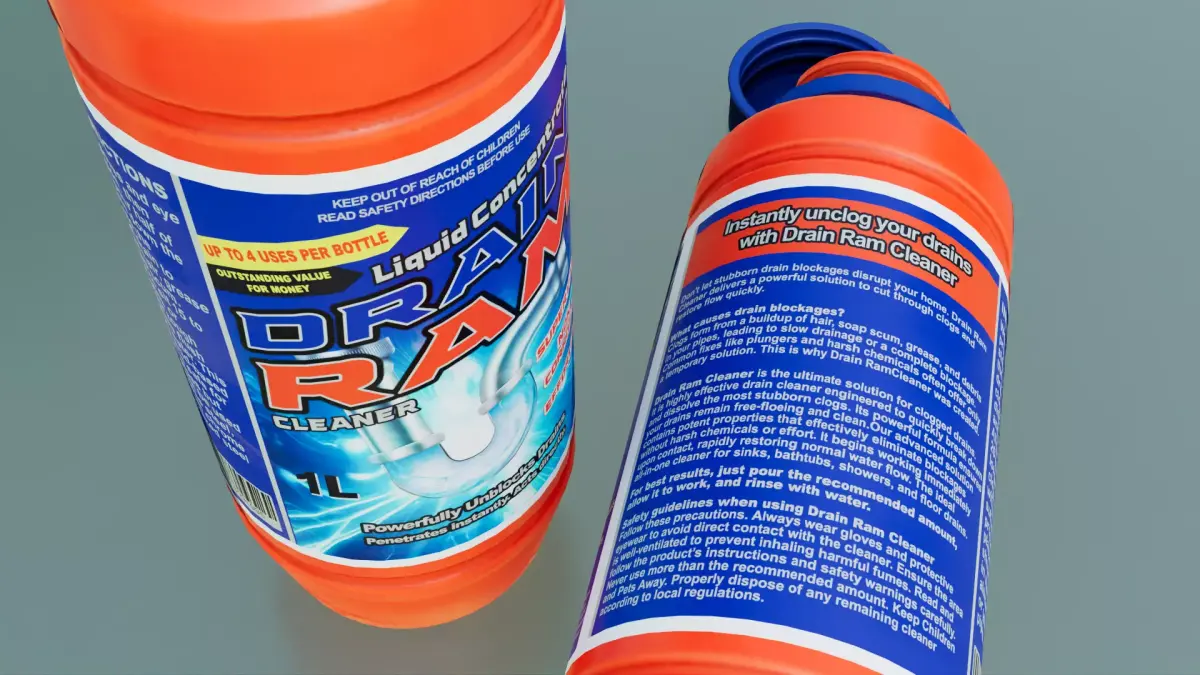 This realistic 3D drain cleaner bottle prop is designed for flexibility across rendering, game, and visualization workflows. Whether you need a clean model for interior scenes, product renders, or real-time use, this asset is optimized for quality and performance. Uses PBR 4k textures. High detailed, original, fictional and readable product label professionally designed to appear authentic, making this model 100% safe for commercial use.