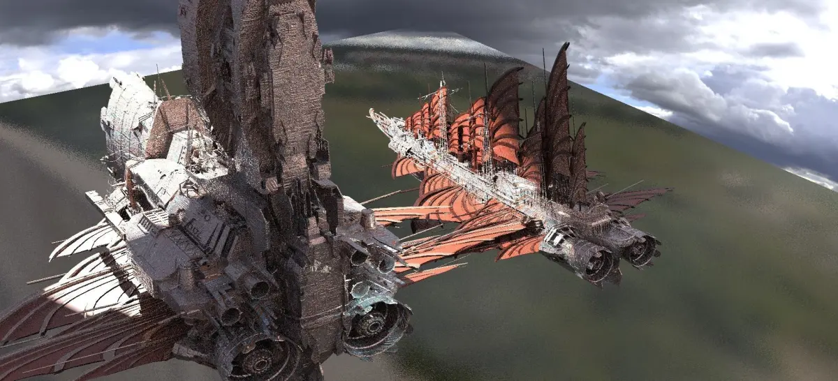 Drake Airship Sci-Fi design 2 versions 3D!! Tiled Texured provided ! model has subtools for the sails and wood parts to assign what textures and materials you want!