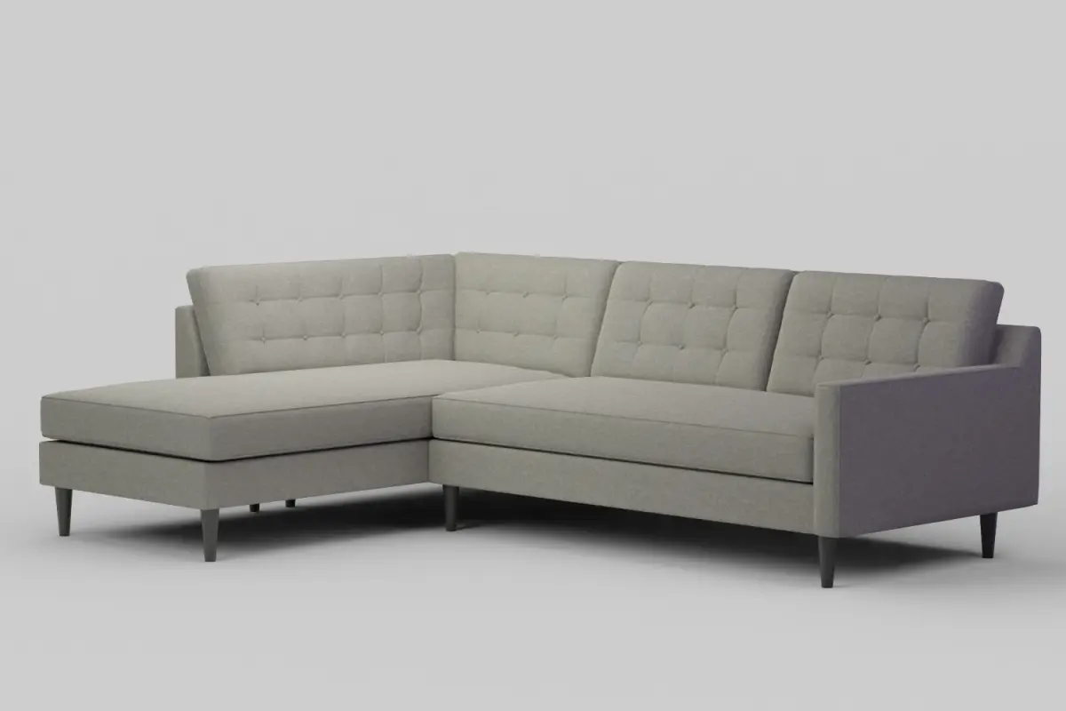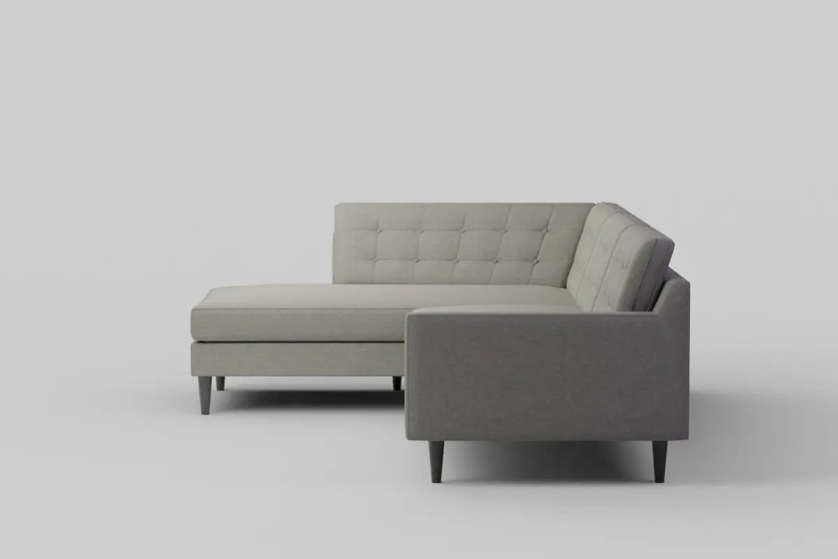 Design: Mid-century inspired L-shaped sectional featuring a low-profile back, firm seat cushions, and streamlined silhouette.