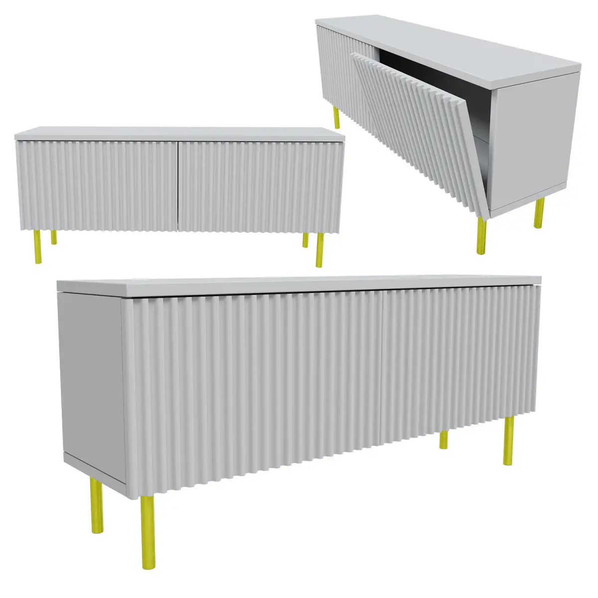 Trendy light beige color and fluted MDF fronts will allow you to easily fit the cabinet into the interior and create a cozy space of the TV-zone.