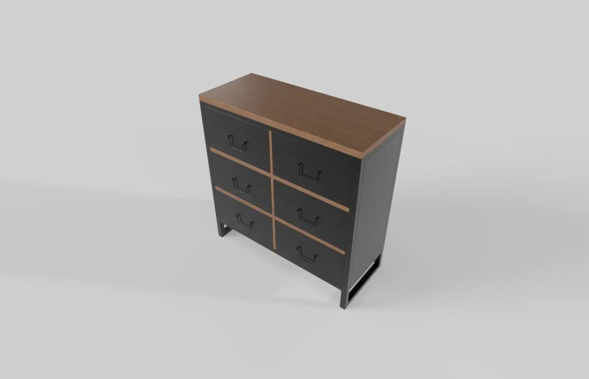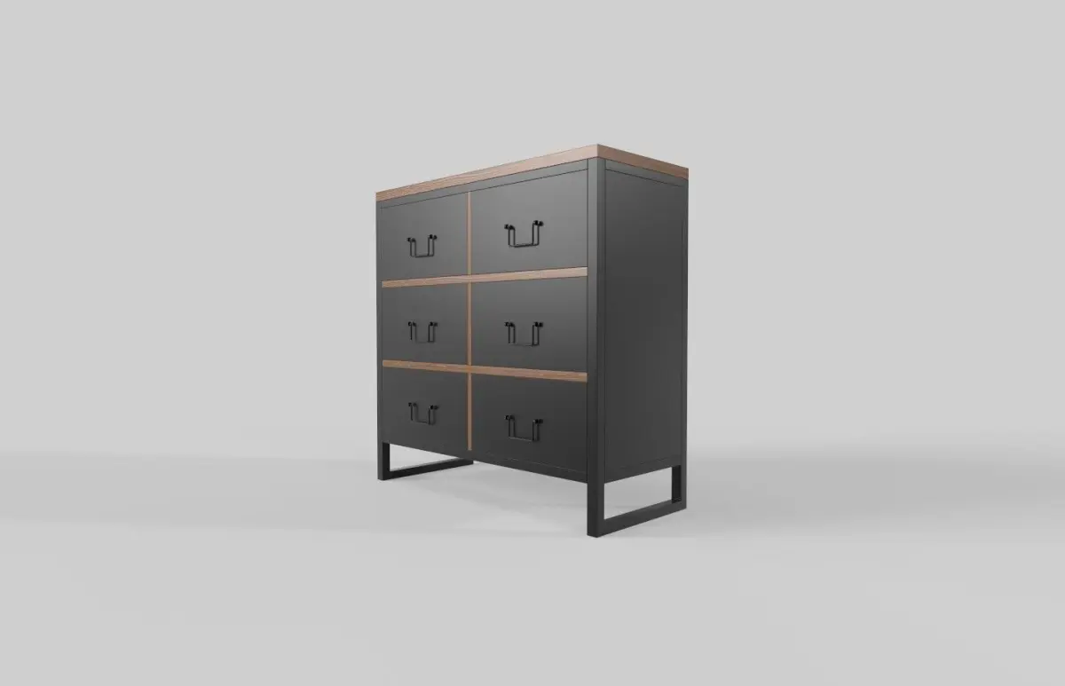 An industrial edge to your decor with this chest of drawers. It is constructed from a combination of metal and reclaimed wood, featuring a distressed black frame and natural wood drawers. The chest offers five drawers with industrial-style metal handles and label holders.