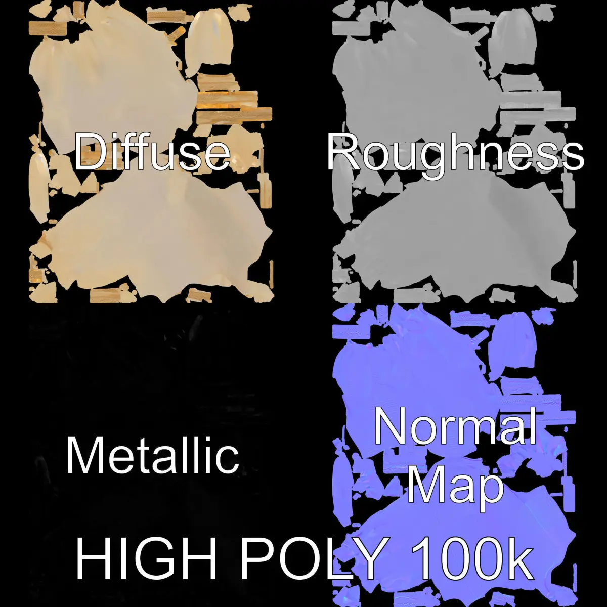 This model pack features a drawstring canvas bag with three levels of detail suitable for various applications. It includes a low-poly model for mobile use, a middle-poly for environment integration, and a high-poly for production rendering. The model is perfect for use in virtual stores, design visualizations, and game environments, enhancing realism with its high-quality textures. Textures are PBR, Diffuse, NormalMap, and reflection/roughness/metallic, optimized for modern rendering engines and compatible with Unity and Unreal. The model is precisely unwrapped with no overlapping UVs, ensuring ease in texturing and application.
