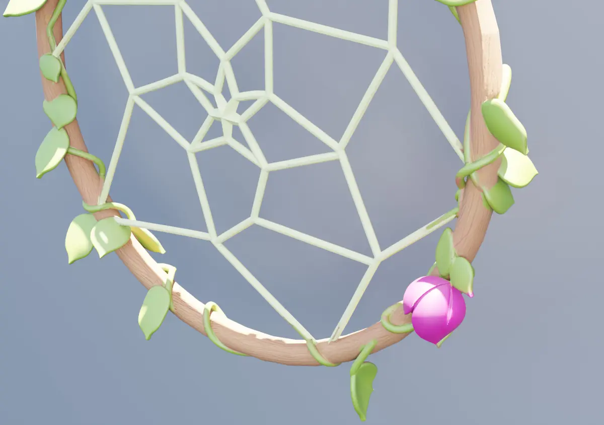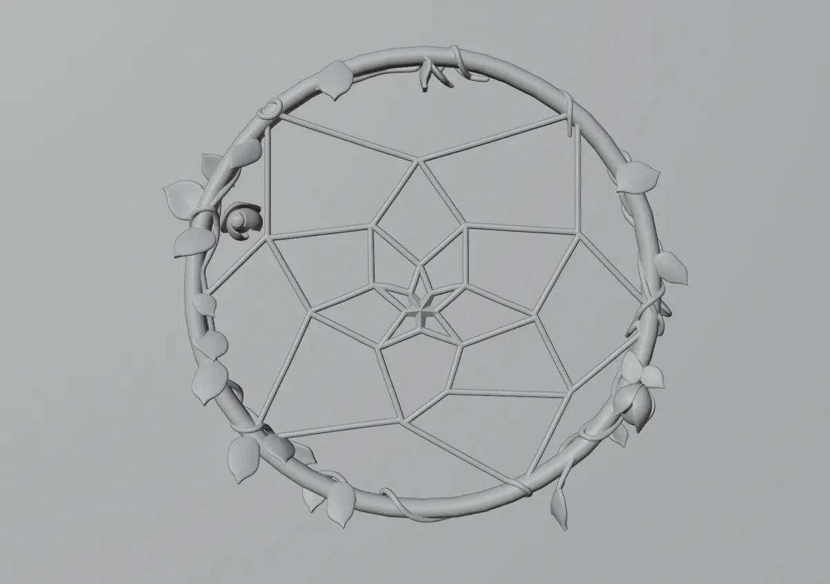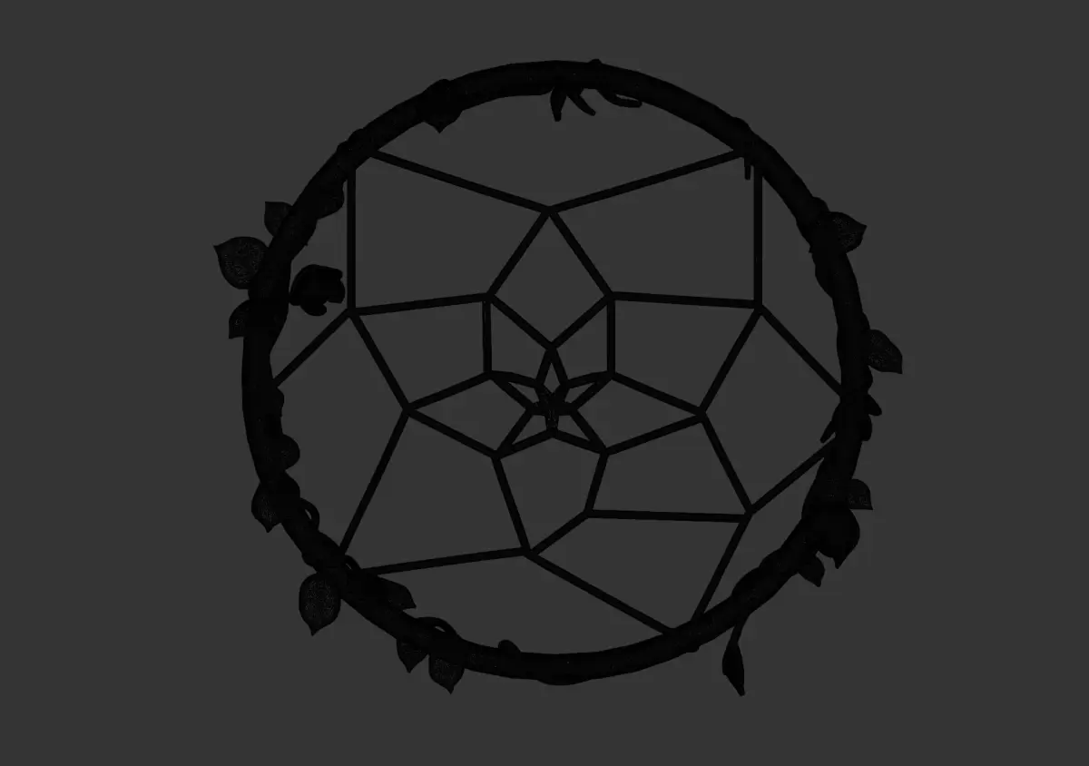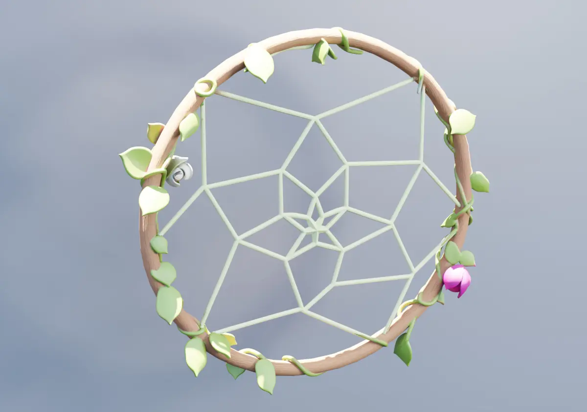 This is a high-quality 3D model of a dream catcher with details. Suitable for interior or outdoor scenes, product visualization, decoration renders, and cultural illustrations.