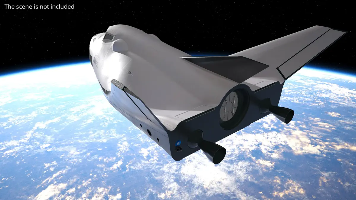 Dream Chaser Orbital Spaceplane Flight Pose Simplified is a 3d model of an advanced orbital vehicle designed for space missions, often recognized for its innovative winged configuration.
