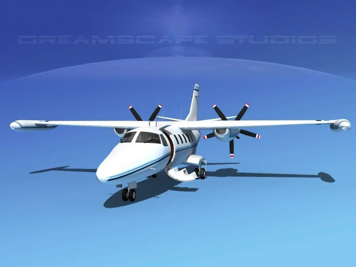 This model is very detailed and fully textured. The cockpit is extremely detailed and fully textured with many animateable features, controls and switches. It is fully textured and includes glass cockpit displays. It comes with animation on propellers, flaps and canopy. The landing gear, flaps, ailerons, elevators, rudder and canopy are animateable. Landing gear are retractable. The passenger door/stairs are animateable and open and position for planing or deplaning passengers and crew. The upper door rotates up to give more passenger head clearance.