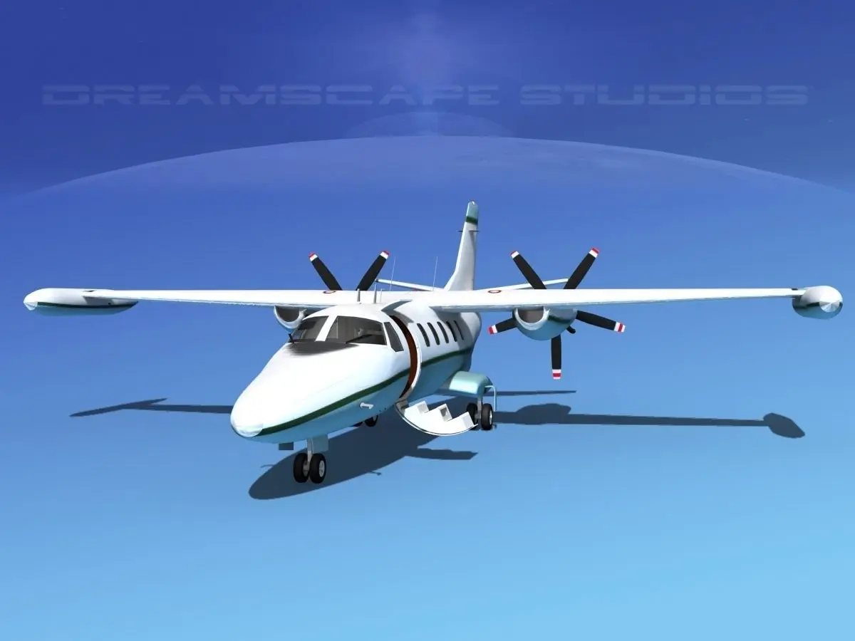 This model is very detailed and fully textured. The cockpit is extremely detailed and fully textured with many animateable features, controls and switches. It is fully textured and includes glass cockpit displays. It comes with animation on propellers, flaps and canopy. The landing gear, flaps, ailerons, elevators, rudder and canopy are animateable. Landing gear are retractable. The passenger door/stairs are animateable and open and position for planing or deplaning passengers and crew. The upper door rotates up to give more passenger head clearance.