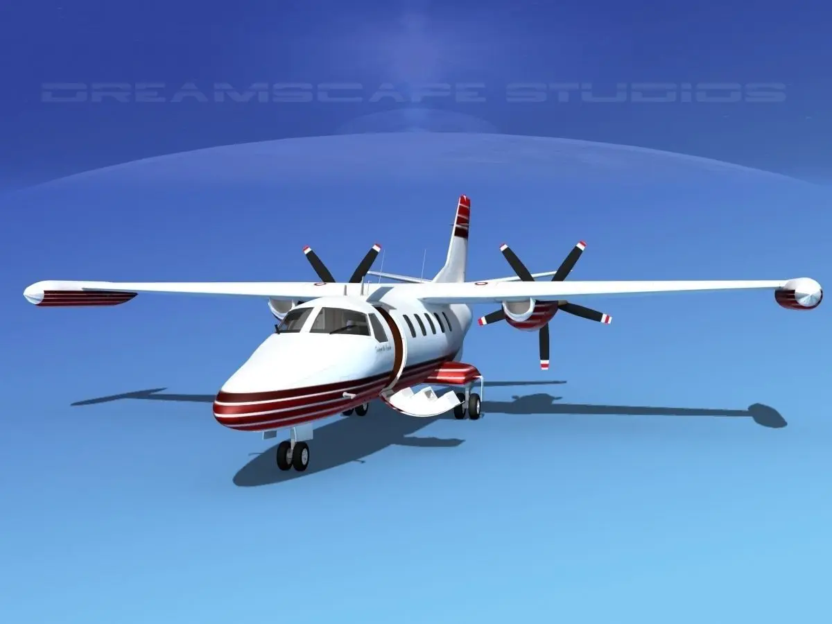 This model is very detailed and fully textured. The cockpit is extremely detailed and fully textured with many animateable features, controls and switches. It is fully textured and includes glass cockpit displays. It comes with animation on propellers, flaps and canopy. The landing gear, flaps, ailerons, elevators, rudder and canopy are animateable. Landing gear are retractable. The passenger door/stairs are animateable and open and position for planing or deplaning passengers and crew. The upper door rotates up to give more passenger head clearance.