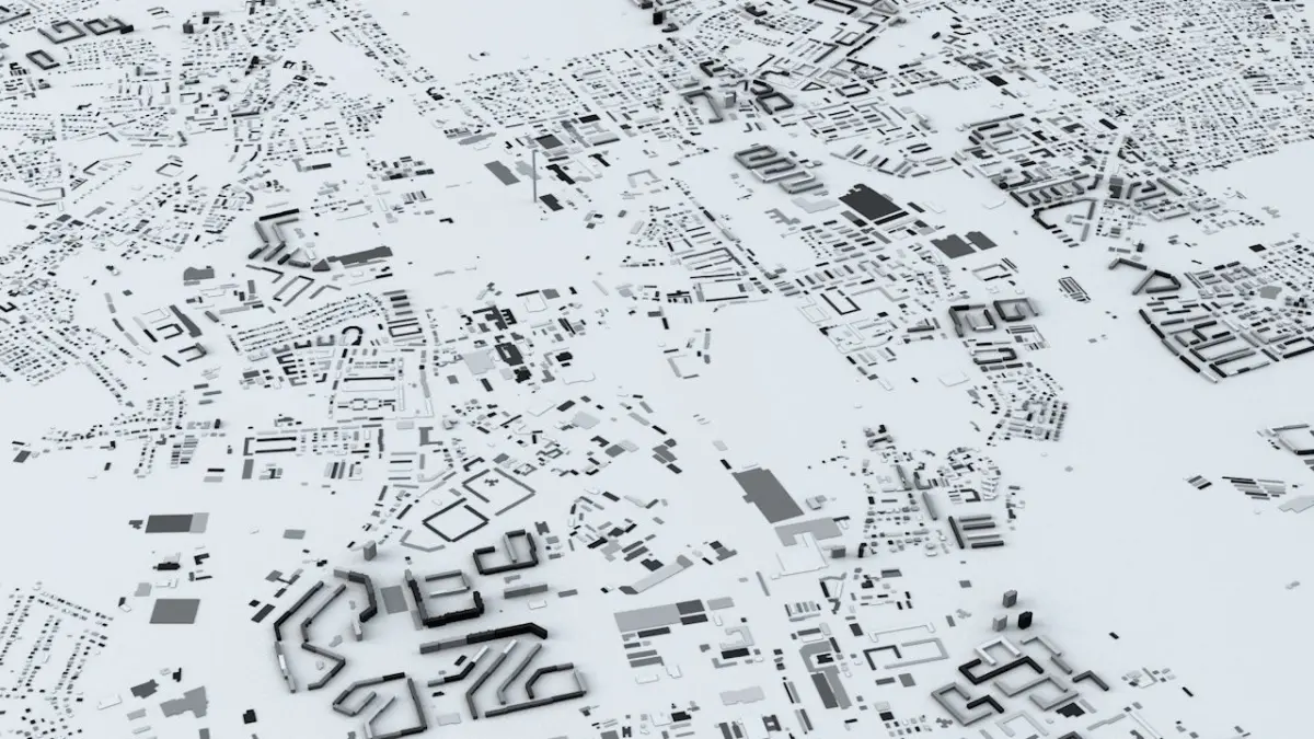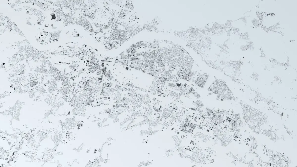 - the model is positioned on a flat surface (all buildings are on the “floor” - no elevation data included)