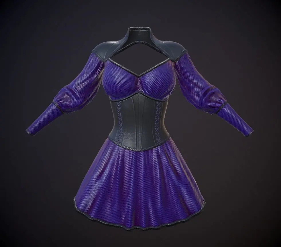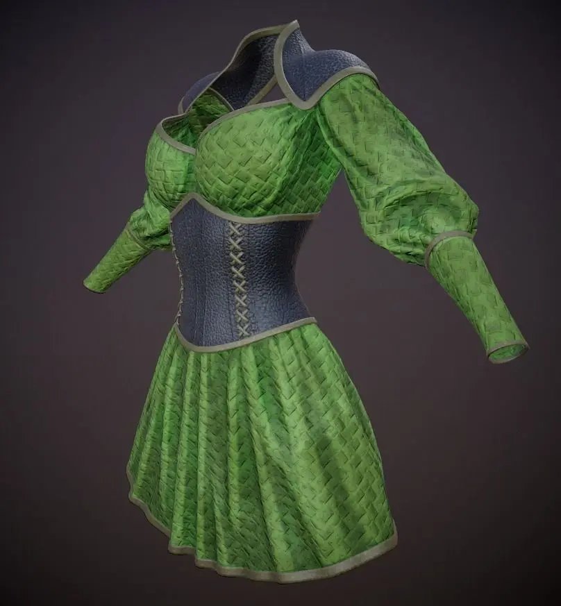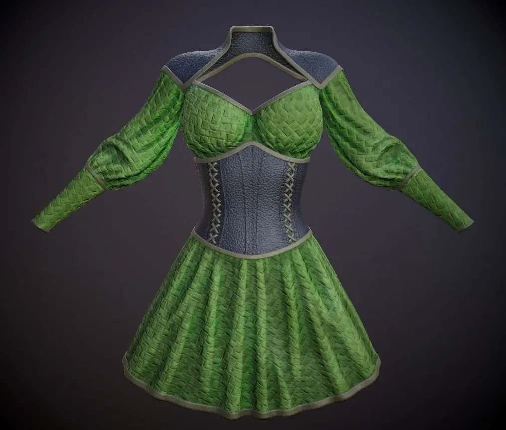 Low poly model dress with corset obj,fbx - 10186 polygons.5 texture options: green,grey,purple,red,white .PBR textures-Metallic Roughness.Texture resolution is 2048x2048, PNG format.Render Marmoset Toolbag 3 light settings files are present.