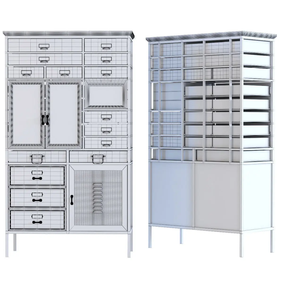 A tall drawer cabinet with black lacquered steel fronts and lots of loving detailsIt looks wonderfully old-fashioned, but is as practical and well thought-out as a modern highboardCharming details such as the metal handles in retro style complete the lookAn eye-catcher with vintage charm - great in the bathroom or kitchen, in the study or hallway - in short, wherever storage space is neededCool but sensuous Casual but useful. Restrained yet extremely engaging. These are the contrasts that make individualists stand outMaterial: Back panel: Plywood Lacquered, Drawer: Fir Solid wood Stained-lacquered, Corpus and fronts: Fir Solid wood Lacquered, Handle: Steel lacquered, Corpus and fronts: Steel powder-coated, Door: Glass Clear, 1,50 kg Max. load-carrying capacity Drawer, Delivery Assembled, Maintenance and Cleaning: Art. No. 25002 Furniture Cleaner