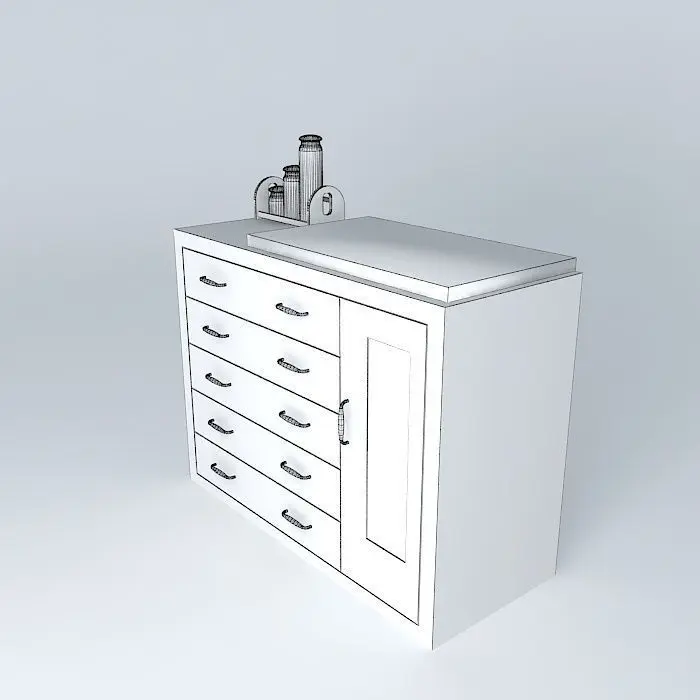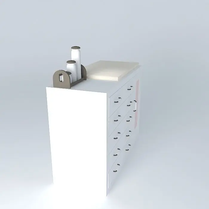 This 3D model was originally created with Sketchup 13 and then converted to all other 3D formats. Native format is .skp 3dsmax scene is 3ds Max 2016 version, rendered with Vray 3.00 Dresser for baby's room. MDF white with detail on the door glass in pink.
