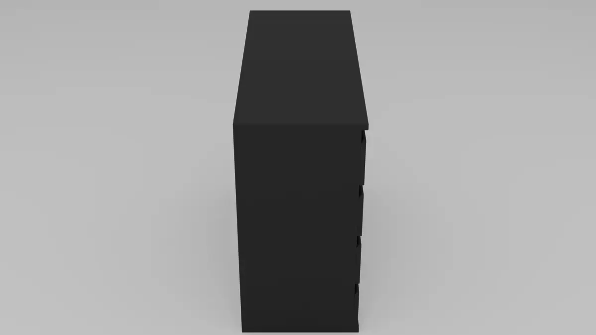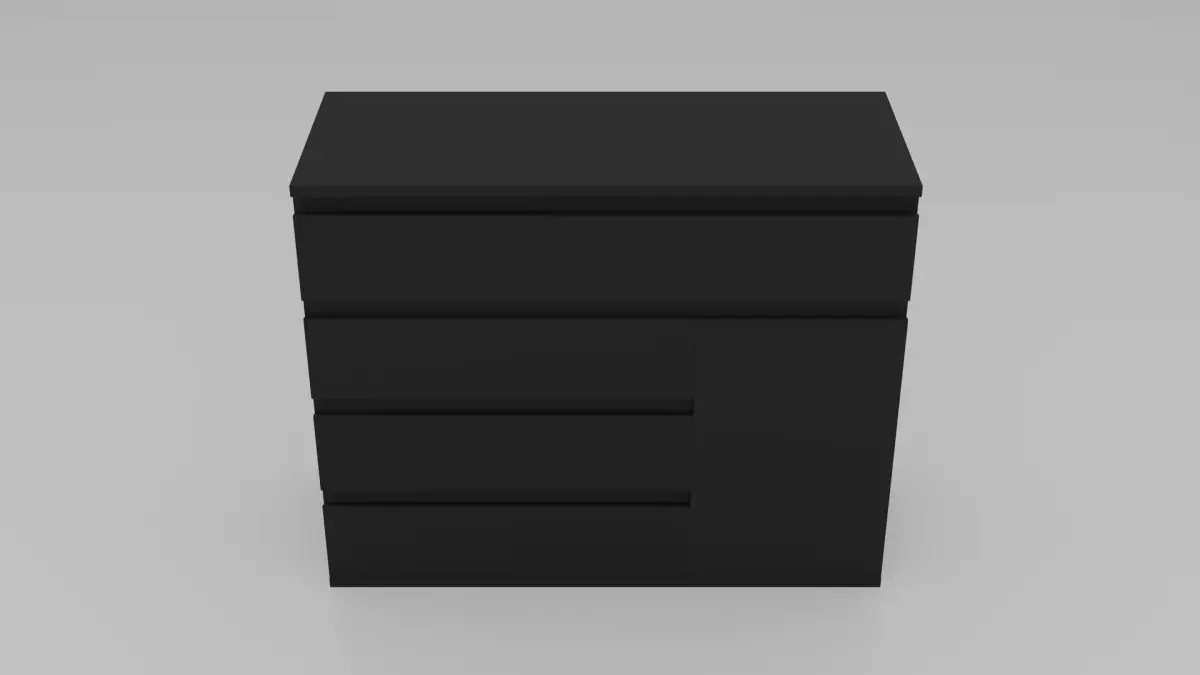 Dresser – Variant 1 of 25 – Black MatteThe Black Matte Dresser – Variant 1 is a realistic 3D reproduction based on the original dimensions. The model features an elegant matte black finish and includes 4 large drawers, 1 small drawer, and a door with an interior shelf. All drawers and the door are individually animatable and movable, making it ideal for realistic scenes and interactions. The clean topology makes this model perfect for visualizations, real-time rendering, and virtual environments.