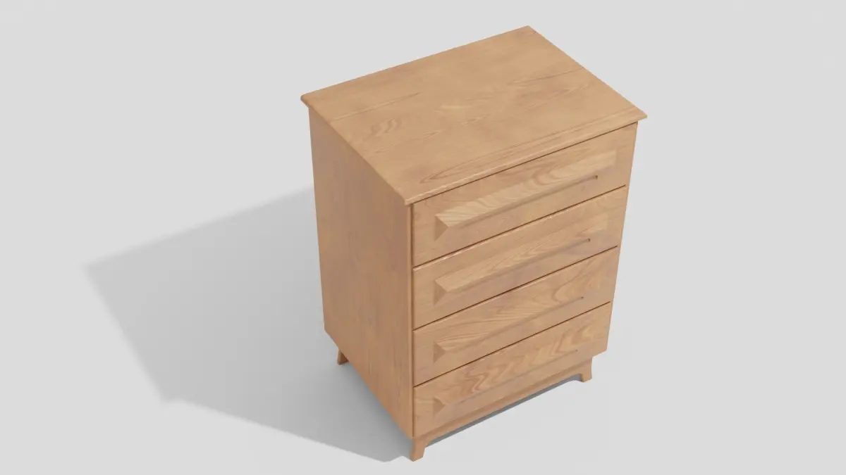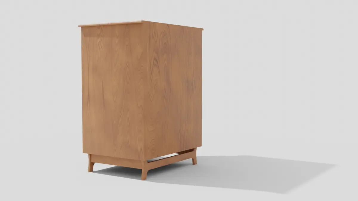 This is a wood dresser 32x 24 x 45". Wood material is PROCEDURAL which means you can change the material to look how you want in the node edditor in Blender. Other File formats DO NOT have textures, you must bake them in Blender before exporting. Drawers are not finished inside. Contains 2 Objects. Edge Split modifier is used for shade smooth option.