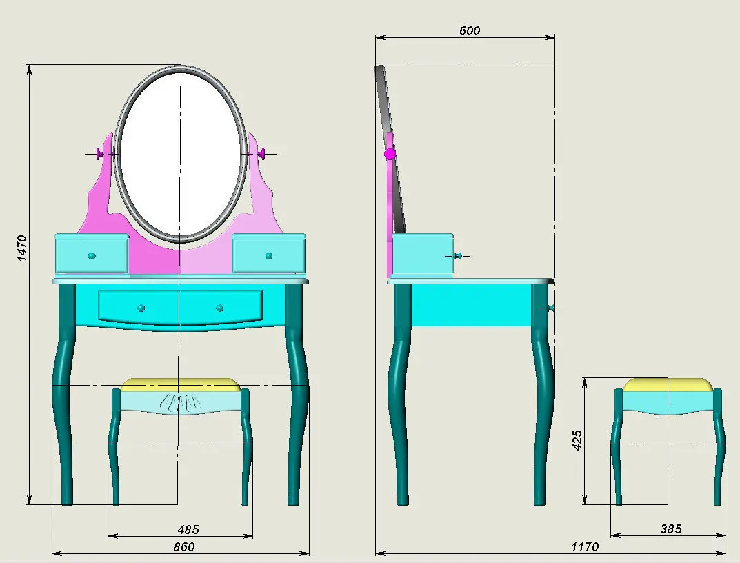 Presenting the 3D model - Dressing table with Led lighting and with a chair