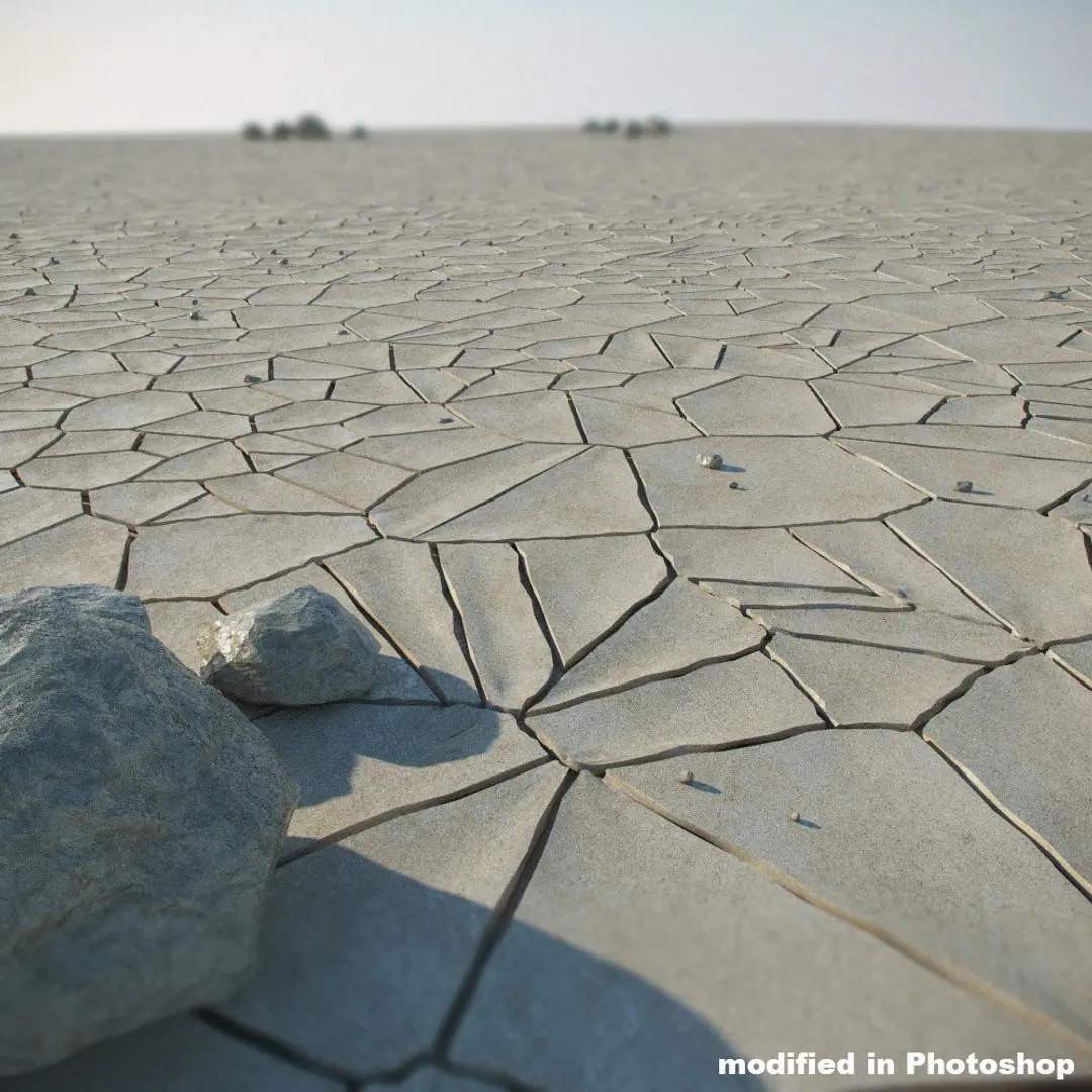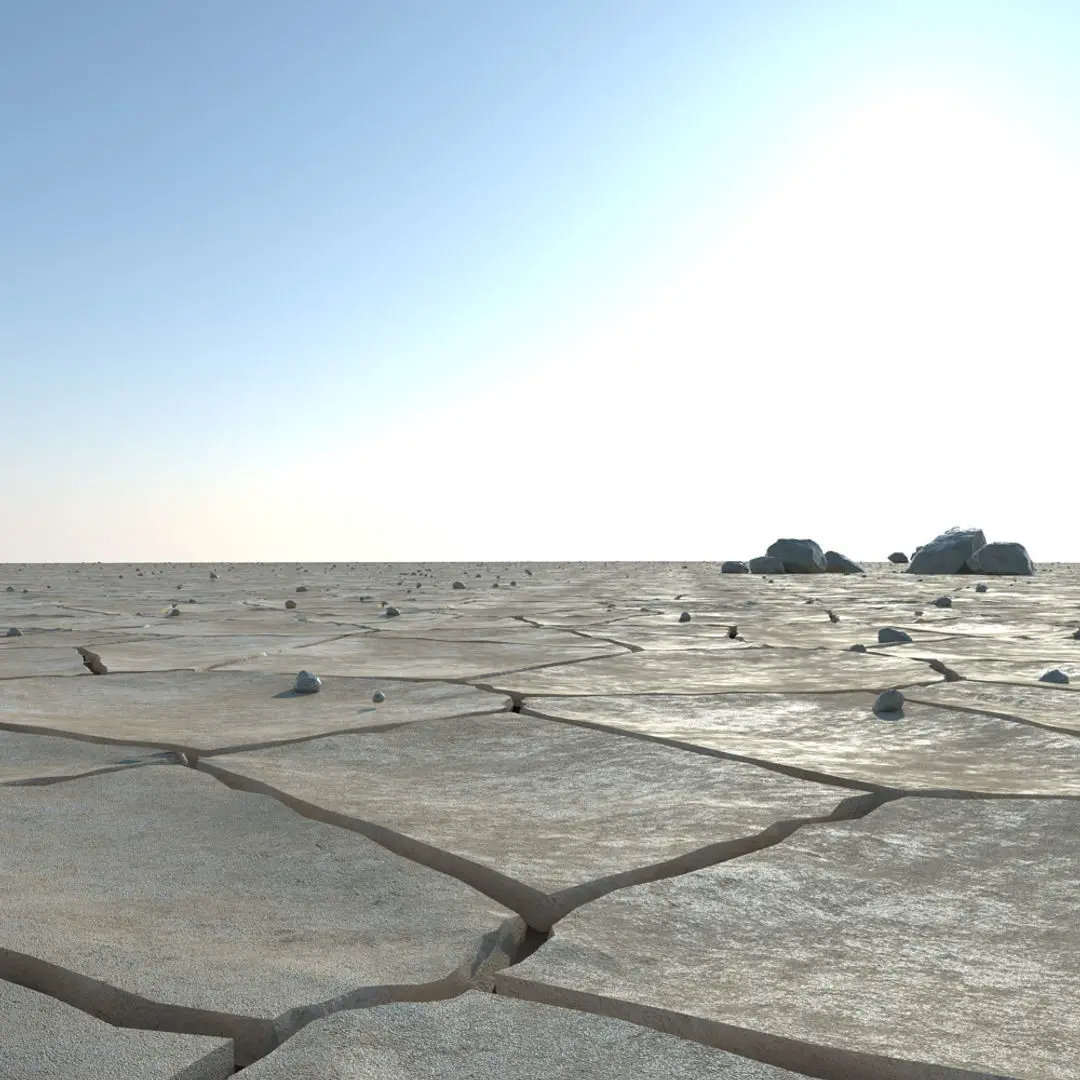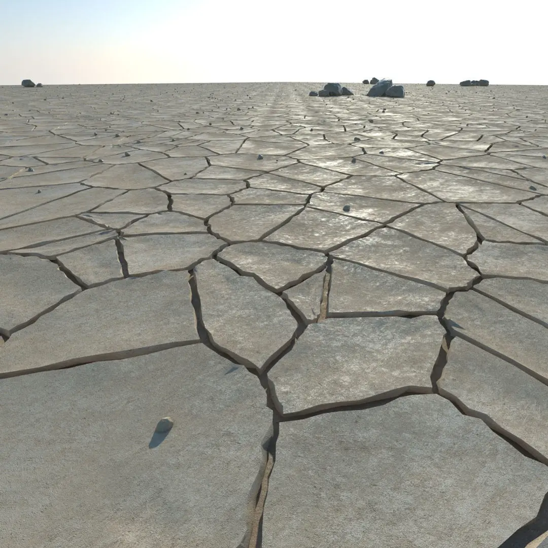 A DETAILED 3D MODEL SCENE OF A DRIED DESERT / RIVER BED / ARID LAND;