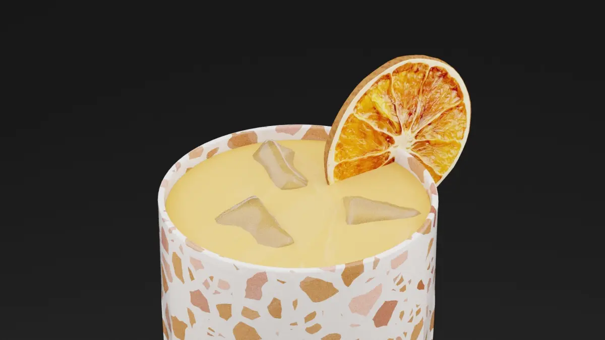 Dried Lemon Cocktail 3D ModelA sophisticated Dried Lemon Cocktail, served in a classic coupe glass, filled with a golden-hued liquid that glimmers with subtle highlights. The centerpiece of the drink is a perfectly preserved dried lemon slice floating on the surface, adding a touch of rustic charm. The rim of the glass is lightly dusted with fine sugar crystals, enhancing its elegance. The cocktail's smooth surface has faint ripples, suggesting a freshly poured drink. Rendered in 4K textures, the model showcases the transparency of the glass, the intricate details of the dried lemon, and the subtle reflections on the liquid. Available in Blend, FBX, OBJ, and DUF formats, it’s perfect for upscale bar scenes, cocktail menus, or luxurious beverage visuals in 3D projects.