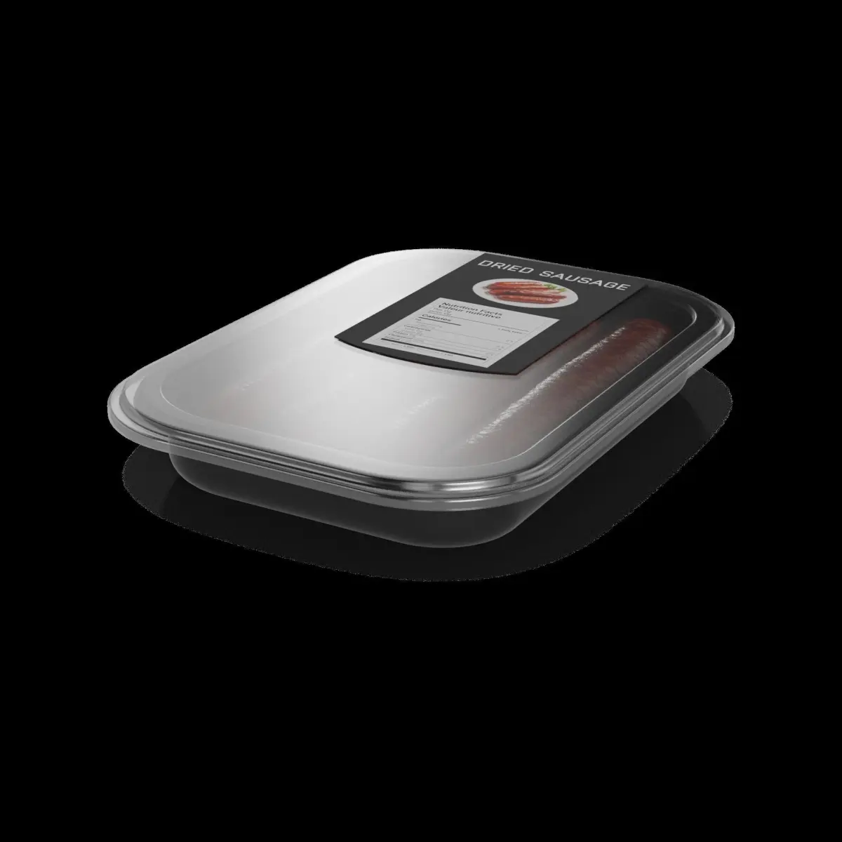 Dried Sausages: Discover the perfect balance of flavors in our dried sausages. Packaged in a sleek and modern black container, these sausages are a true culinary delight. The packaging includes a minimalist label with a text description of the sausage, along with a graphic element showcasing the ingredients. Each sausage is vacuum-sealed to preserve its taste and texture. With a length of approximately 7 inches, these sausages are a gourmet treat that will leave you craving for more.