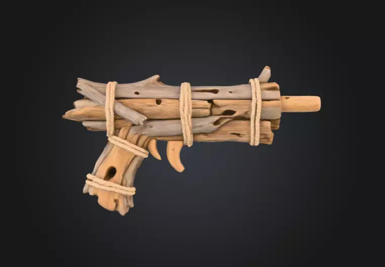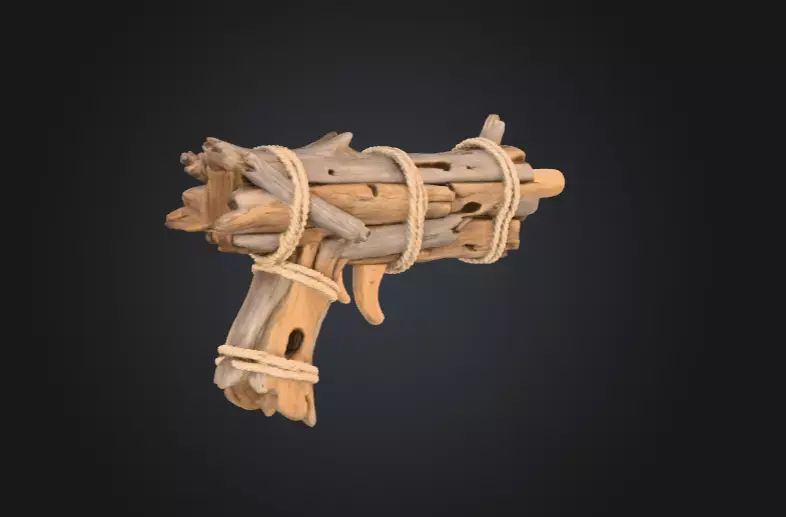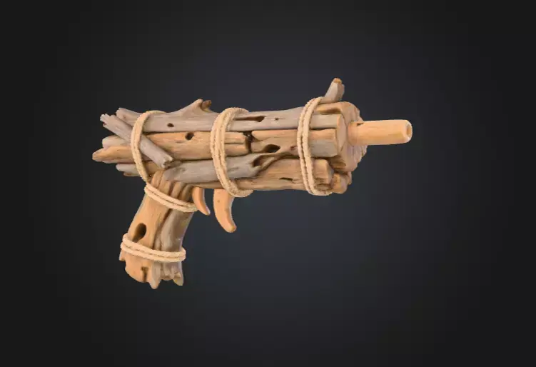 The Driftwood Drencher is a masterfully crafted squirt gun design that merges creativity and nature into a single rustic concept. Built entirely from hollow driftwood logs, this imaginative piece features a body formed by intertwining wooden branches, held together by coarse rope bindings for a raw, handmade aesthetic. Its organic design gives it the appearance of something both ancient and inventive — as if forged by an island survivor or crafted for a fantasy adventure world.