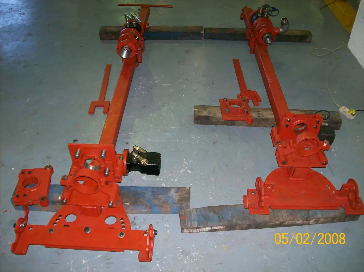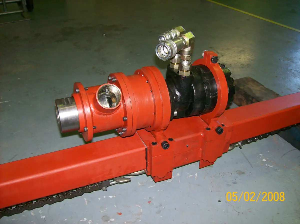 Drill rig for rock drilling, designed to be portable by small team of men. Drill is hydraulically operated [the hydraulics are not included].