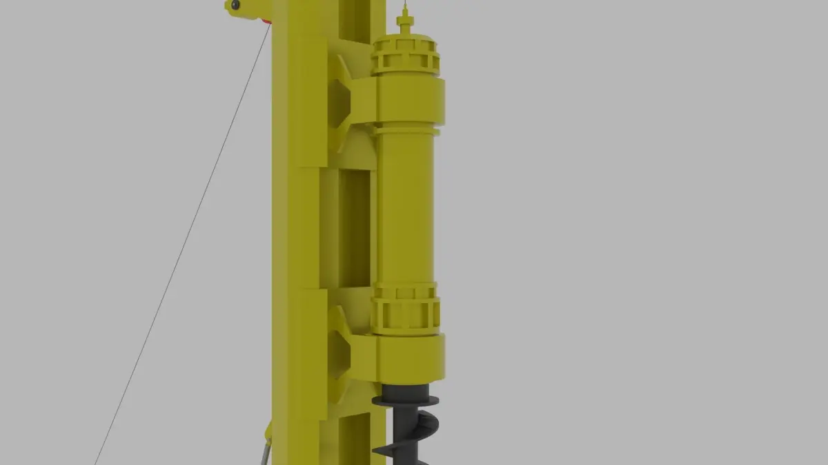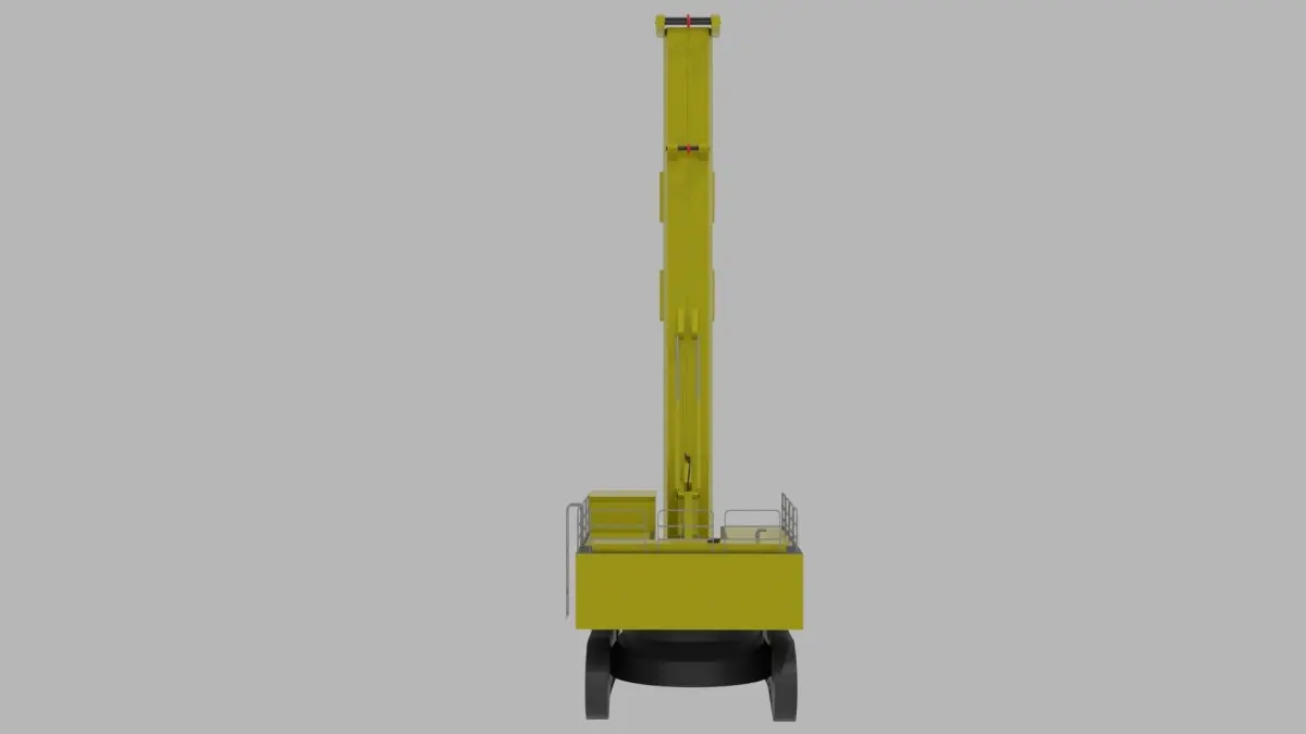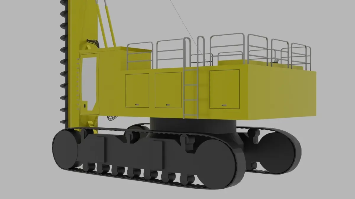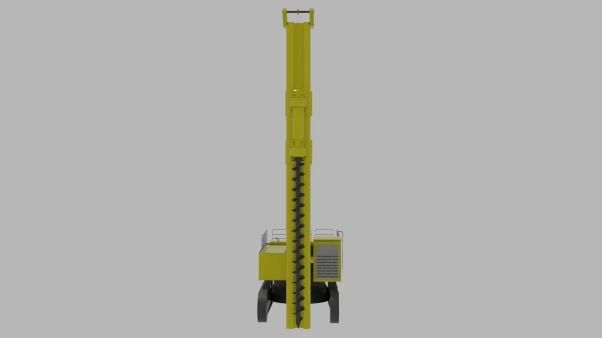 A large driling machine or excavation machinge, made for drilling vertical holes in the ground. The machine is yellow and black, but the colors can be easily changed.