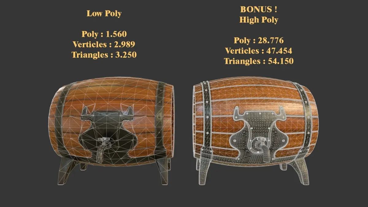 Game Ready Low poly Drinking Barrel.
