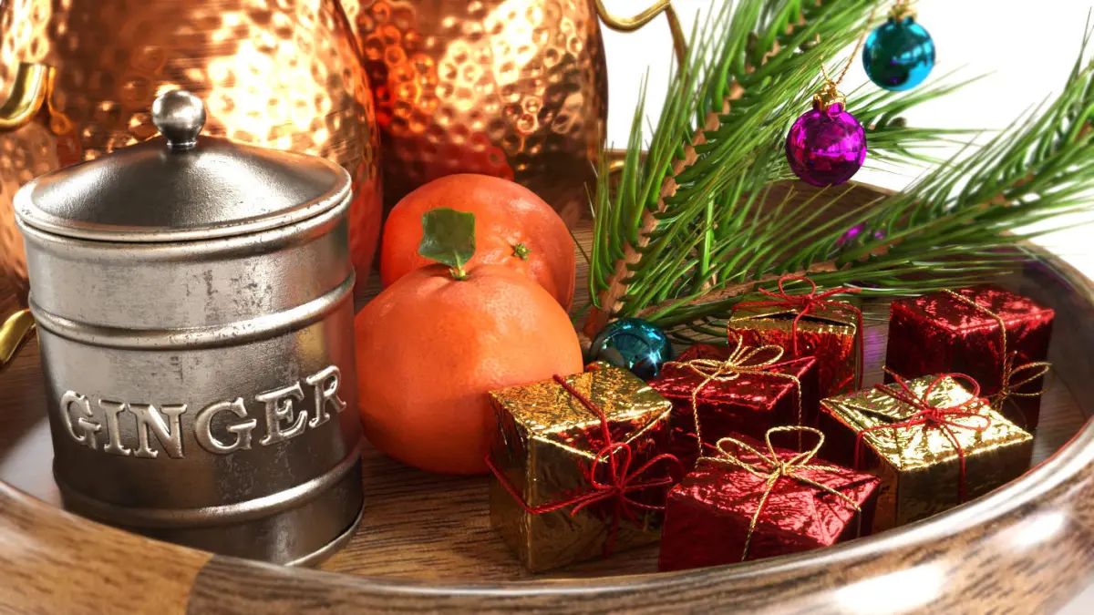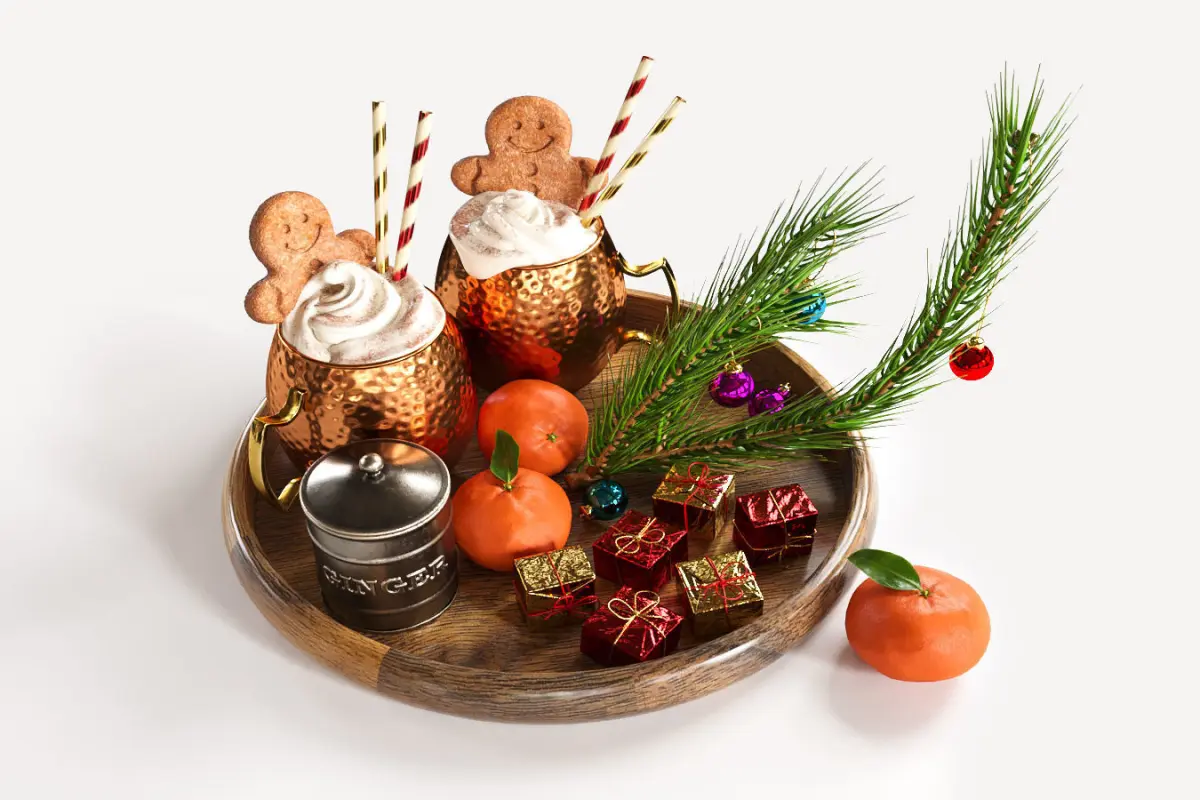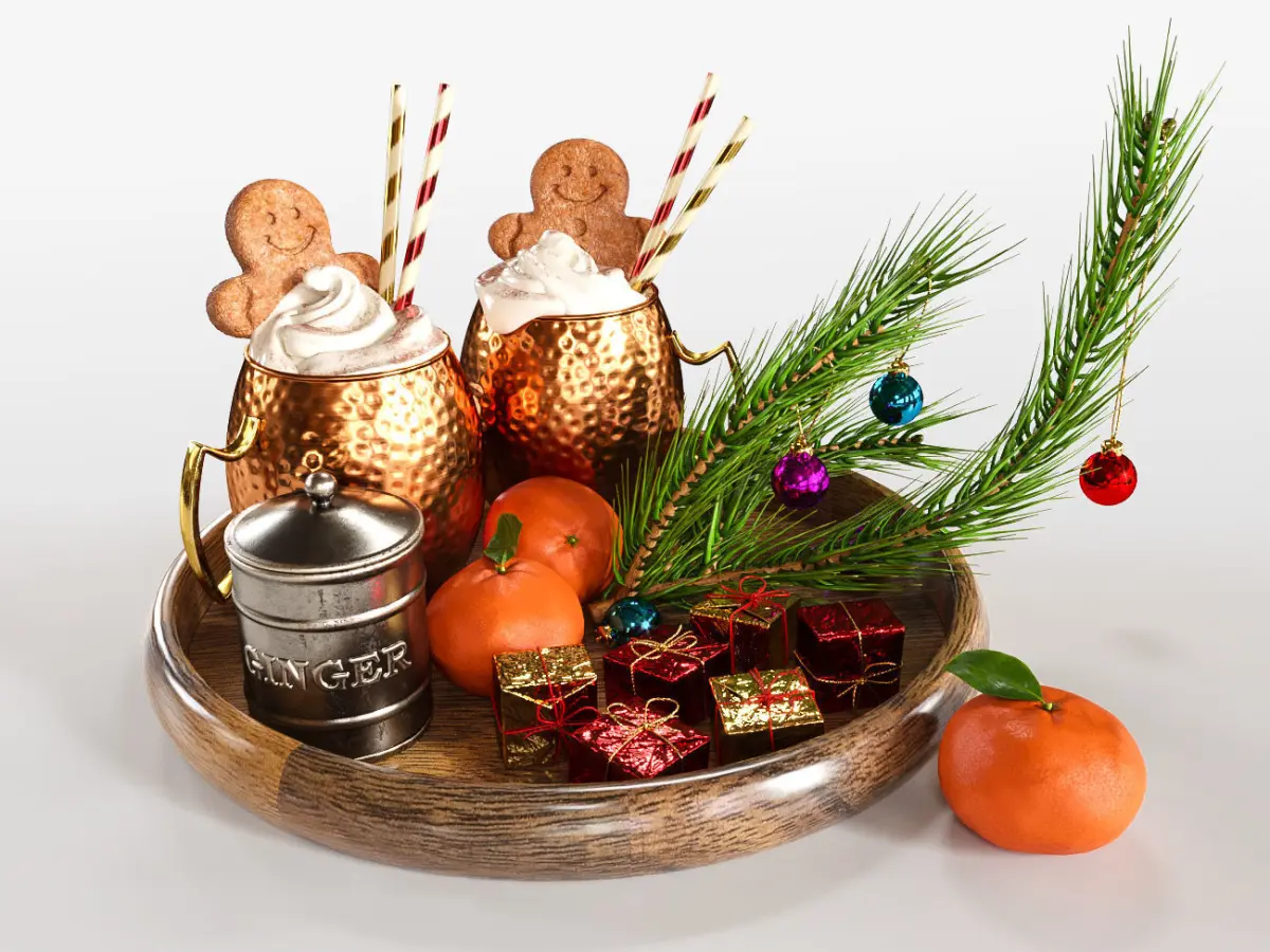 Drinks on a tray with gingerbread 3D model