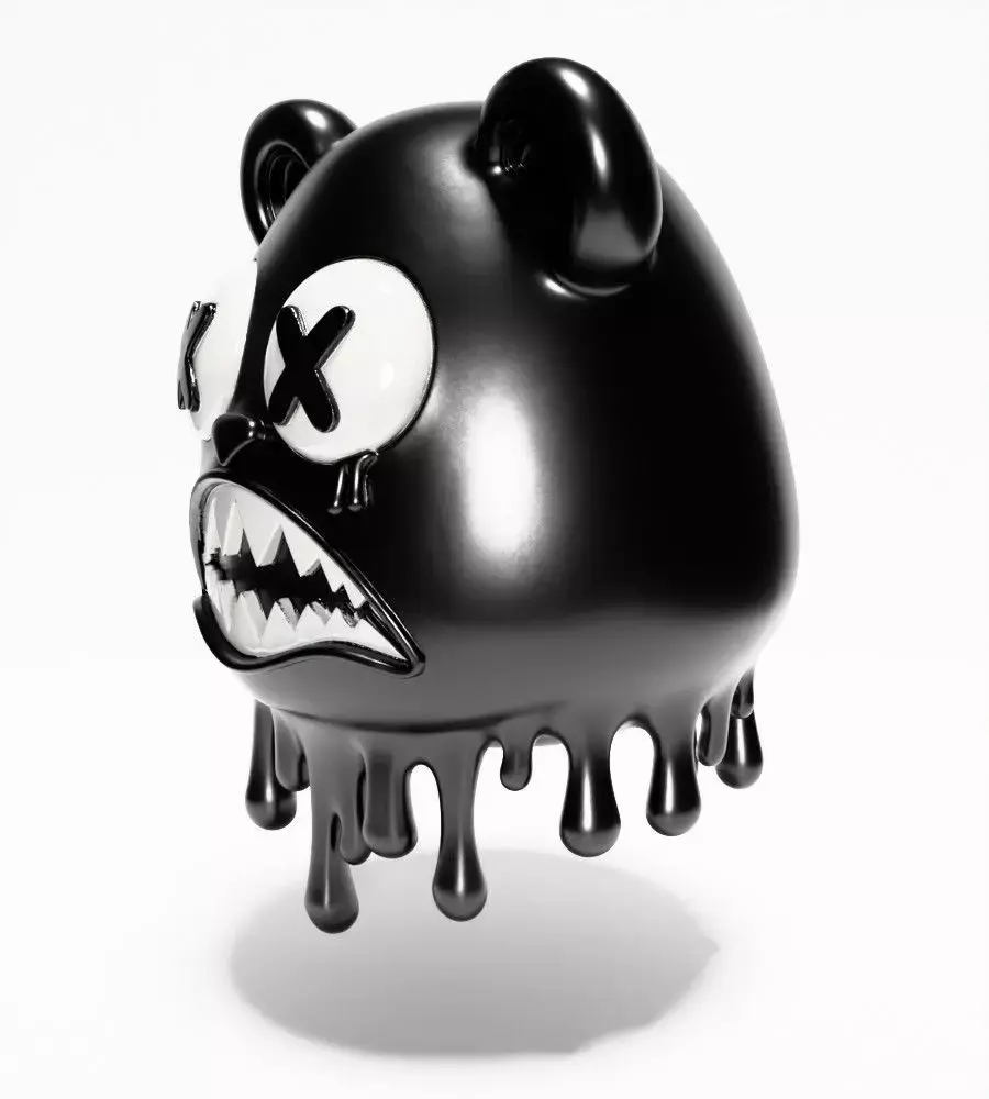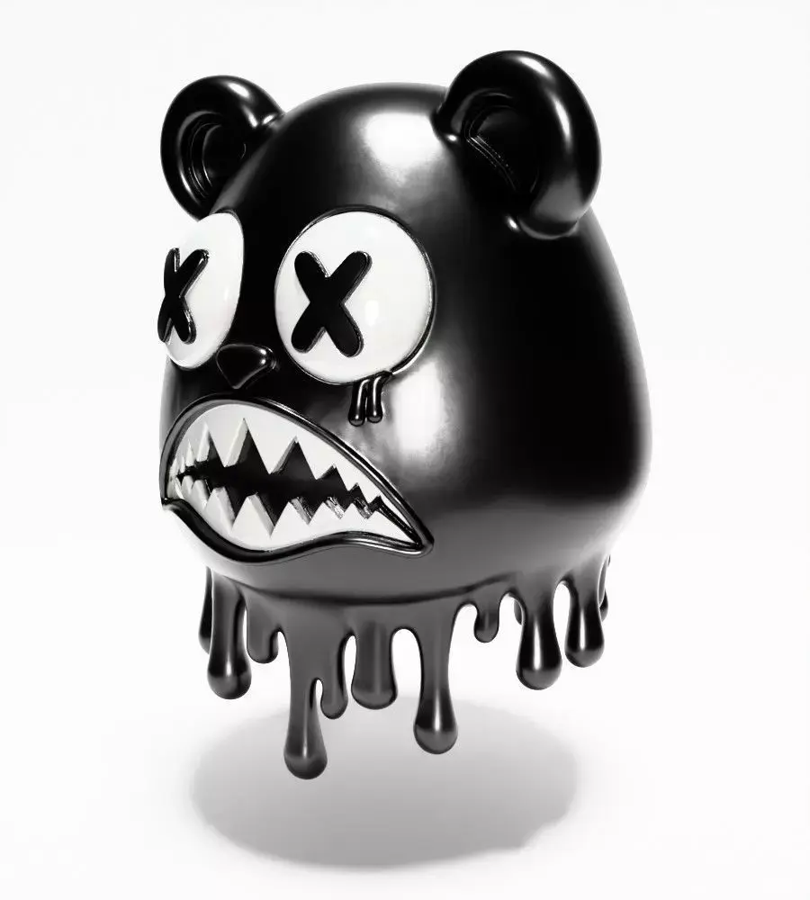 Drip Painting Melt Bear is a modern artwork depicting a shiny teddy bear, often shown with its paws covering its face, giving the impression that it is melting or liquefying thanks to a glossy surface that suggests a visual fluidity. This artistic technique uses fluid paints that drip and blend on the surface of the bear figure, creating a very expressive and dynamic drip painting effect.