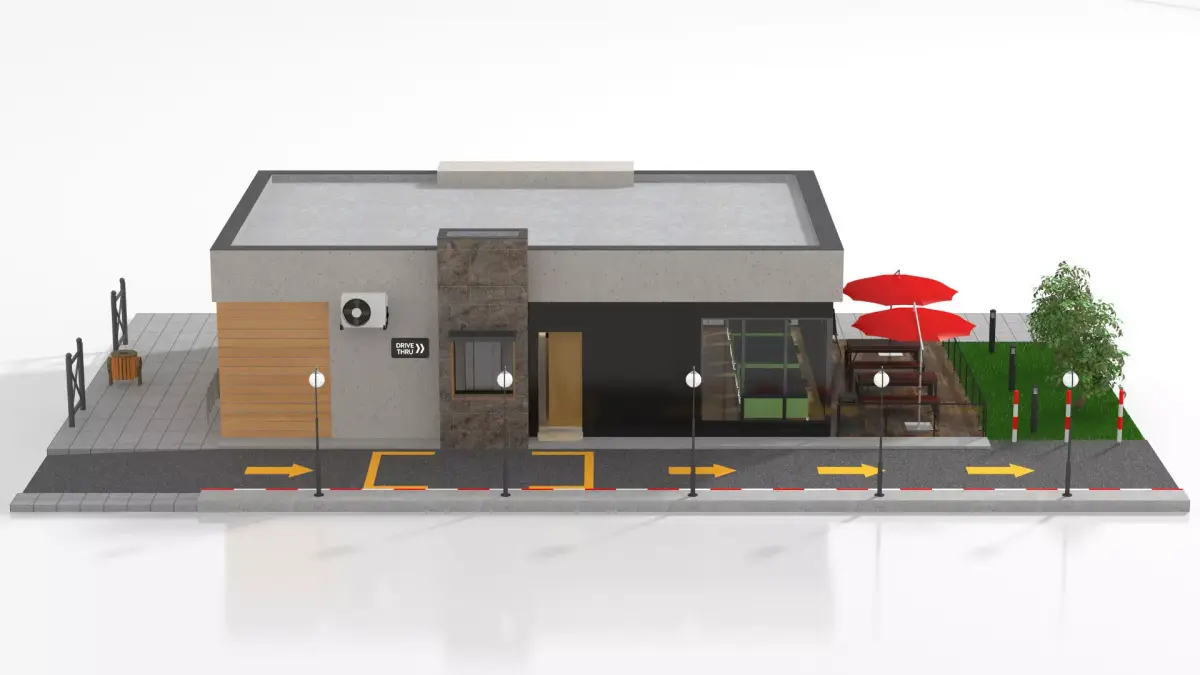 Detailed 3D model of a Drive-Thru Fast Food Restaurant