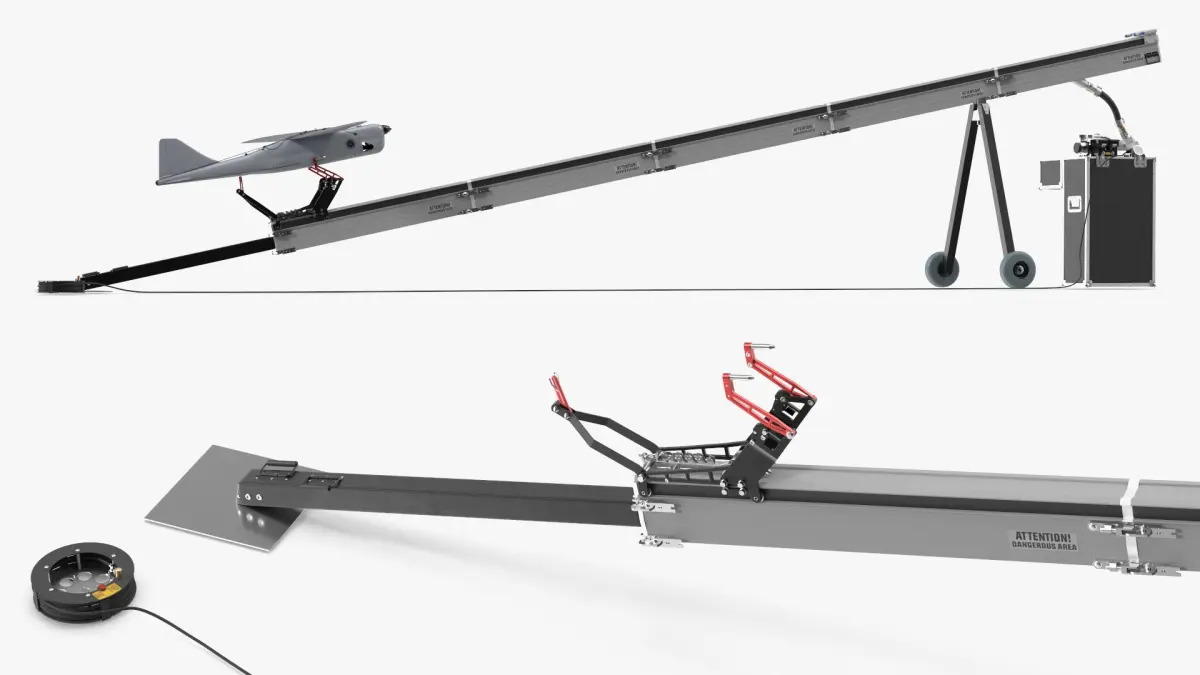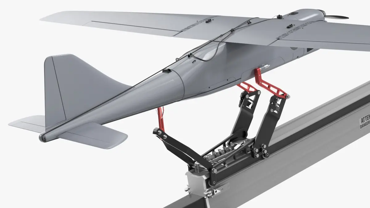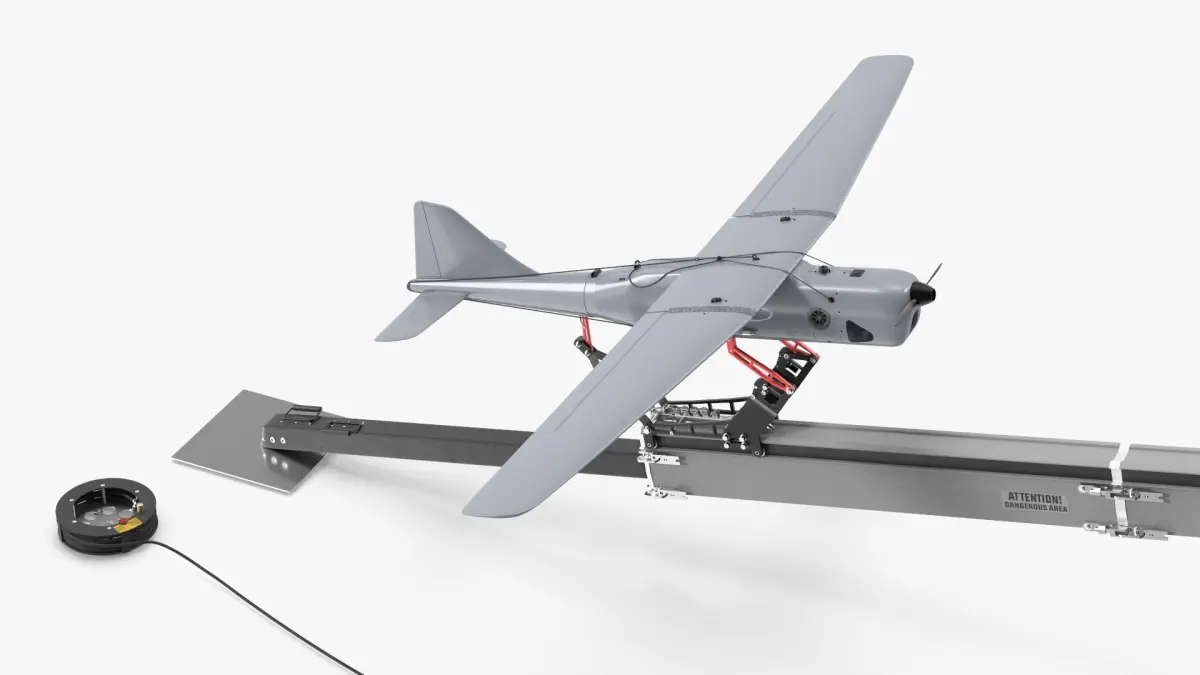 Drone Launch Rail Platform with UAV is a 3d model of a UAV (Unmanned Aerial Vehicle) with an integrated launch system, designed for reconnaissance and surveillance applications.