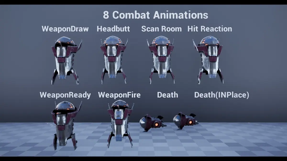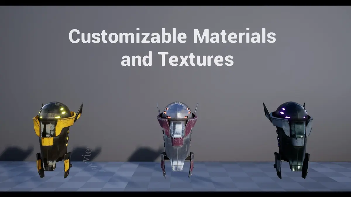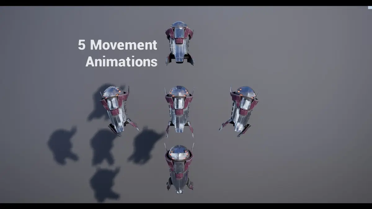 PART OF THE FULL METAL MEGA PACKMedium floating drone, with 3 different colors included and parameter-based masked materials making infinite possible color schemes, 13 animations includes FBX, .Blend and UE4 Project, 4 materials (1 material, 3 Instanced Materials) and 10 TexturesIncludes Overview mapthe environment not included (Scifi Interiors Pack)5 movement animations8 Combat animationsJoin our Discord for Support - https://discord.gg/qsGgVmCTechnical DetailsFeatures:
