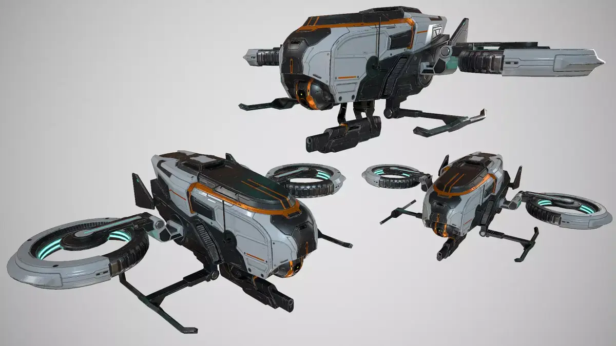 Low-poly drone1 4096x4096 PBR texture map3 different colorsUnreal texture includedmaps, base color, normal map, emissive, roughness, metallic, ao4482 polygonsmesh OBJ and FBX