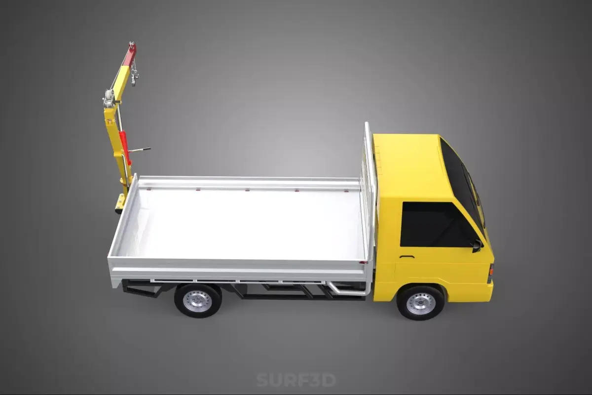 At its core, the system utilizes a TRUCK PICKUP as the mobile base. This typically refers to a light-duty or medium-duty commercial vehicle known for its open cargo bed, robust chassis, and off-road capabilities, providing both mobility and the power source for the integrated lifting apparatus.