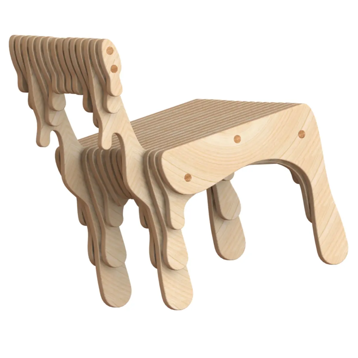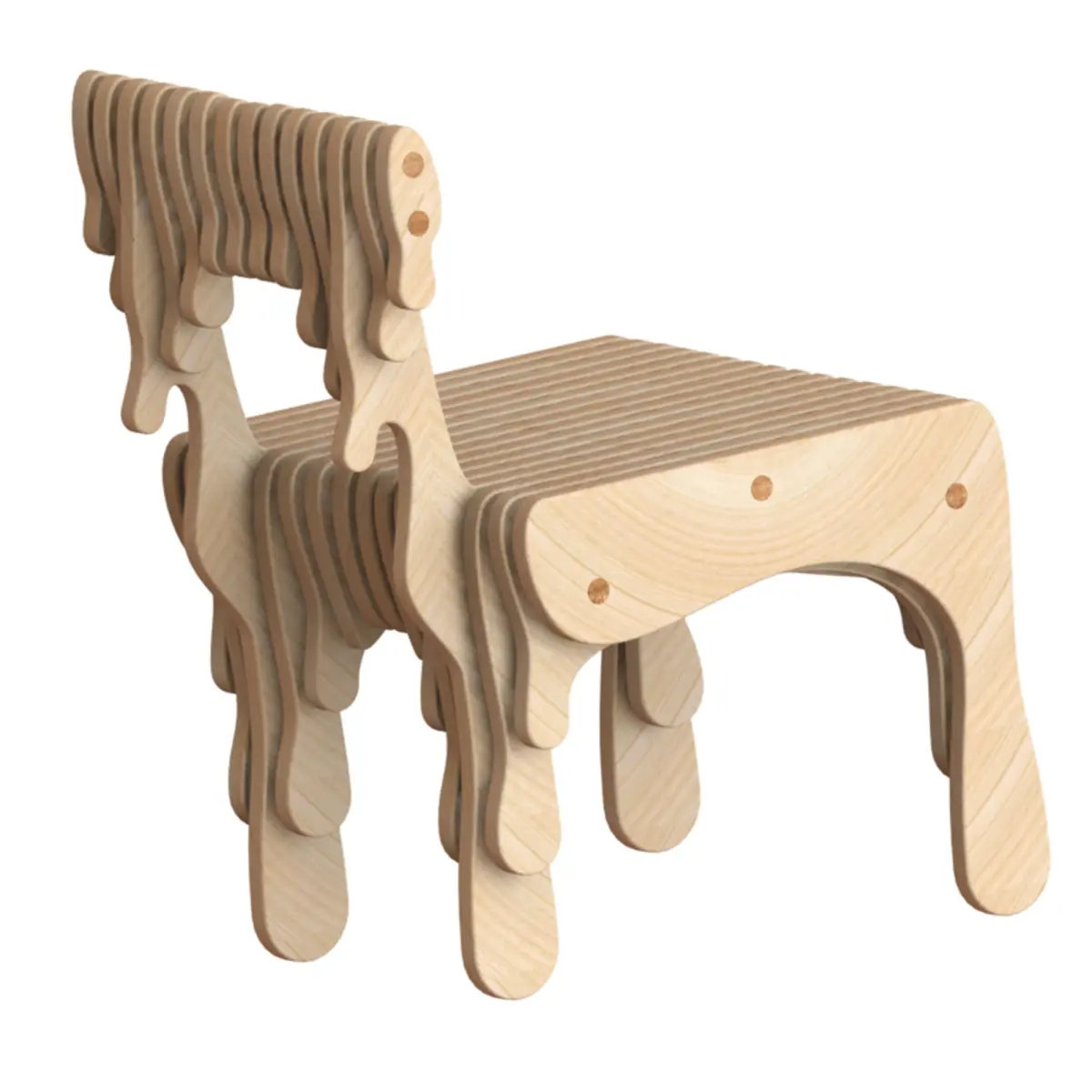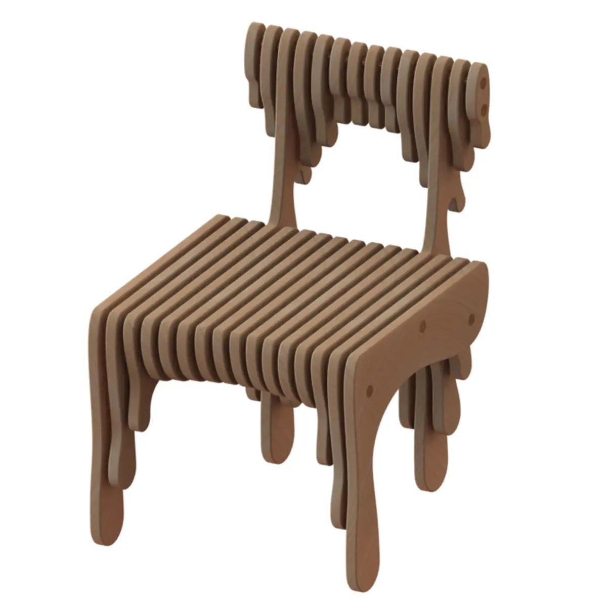 inspirited by water drops, it seems some surface wood have to be drop from the chair, and a little like a horse, in the rhythm of the surfaces move the eyes completely through the model and i hope it impress people when use it or even look at it.the size of this chair and modeling designed according to human body anthropometry, so the hight is about 400 mm the average hight of human seat.as you can see there is no dangerous edge on it and in real prototype its heavy about 19 kg, that makes this chair stable and harmless for children.this model suitable for kindergarten or art gallery or someplace like these.I hope you will like it.Juhann product