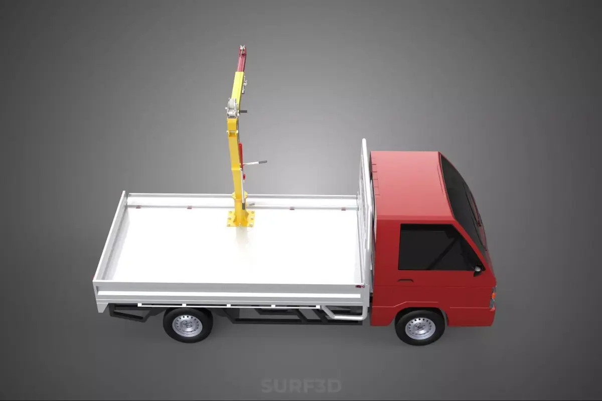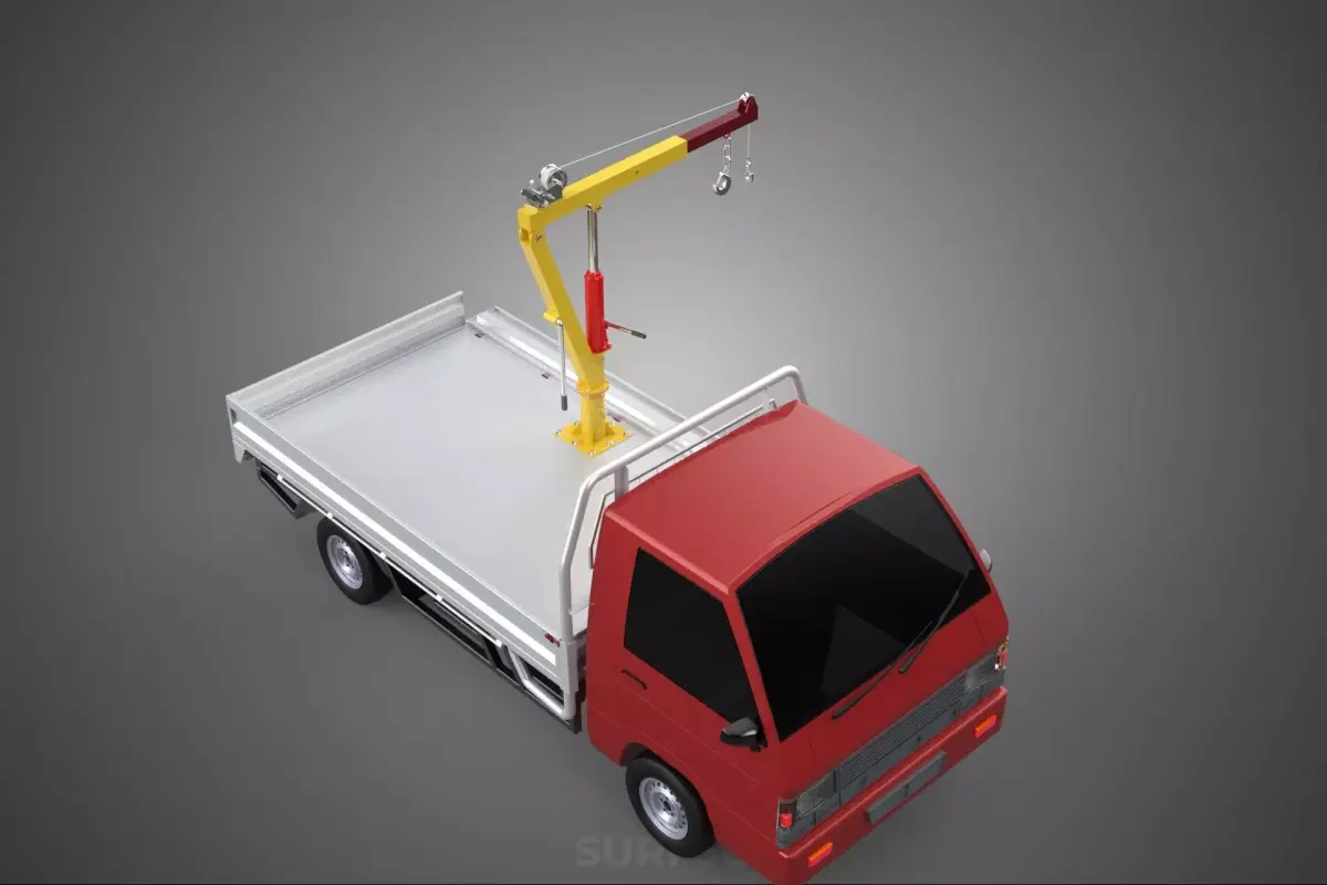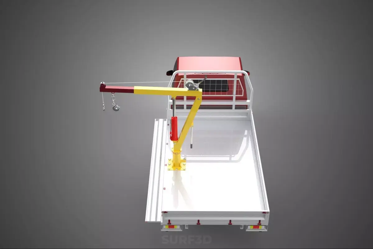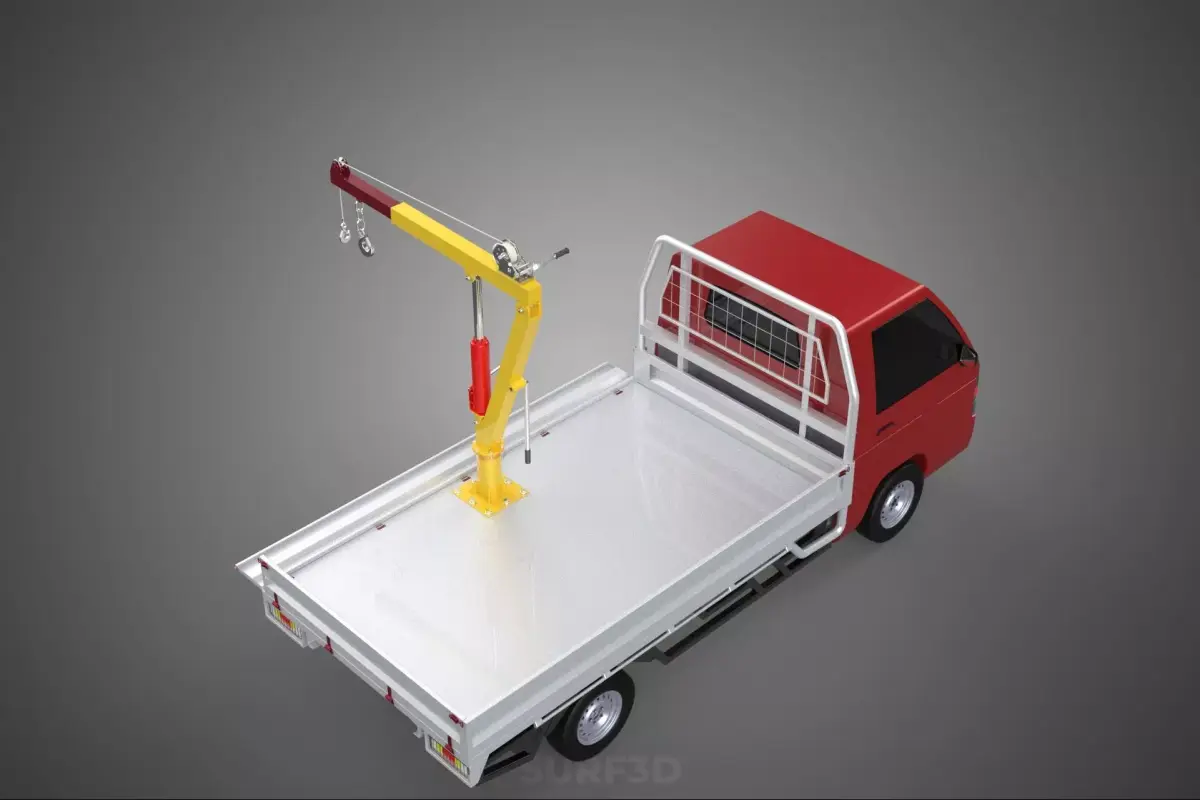 KEYWORDS: Pickup Truck, Utility Vehicle, Load Bed, Cargo Bed, Drop Side, Tailgate, Gate Door, Crane Hoist, Lifting Equipment, Hand Winch, Material Handling, Cargo Transport, On-site Lifting, Jib Crane, Manual Winch, Commercial Vehicle, Construction Equipment, Landscaping Tools, Logistics, Heavy Lifting, Worksite Efficiency, Vehicle Specialization, Removable Sides, Flatbed Conversion, Industrial Use, Load Management, Safety Protocol, Self-sufficient Lifting, Utility Truck, Mobile Crane