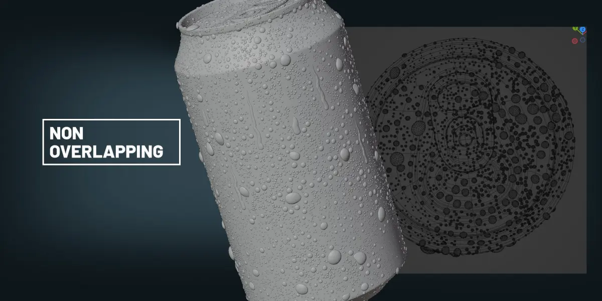 Non-OverlappingUsing proximity between the droplets, all distribution happens without any unrealistic looking overlapping droplets. You can of course change the proximity value to your liking.