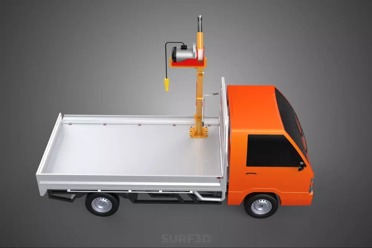 A Dropside Folding Jib Crane Hoist Motor Crank Winch on a Truck Pickup represents a highly integrated and versatile material handling system designed for mobile lifting operations. This apparatus combines the inherent mobility and logistical advantages of a light commercial vehicle with the precise lifting and positioning capabilities of a compact crane, specifically engineered for tasks requiring both transport and load manipulation in diverse operational environments. Its design emphasizes operational flexibility, ease of transport, and efficient deployment for a wide range of industrial, commercial, and utility applications.