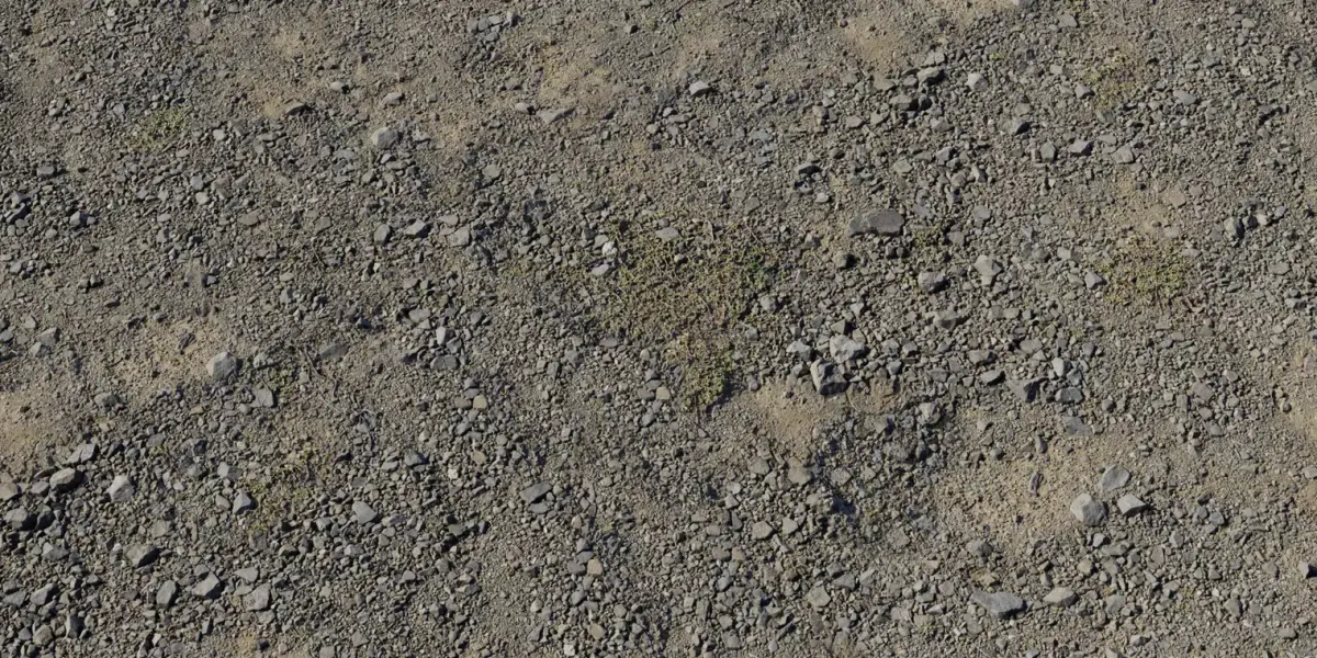 A photoreal dry dirt ground scattered with fine gravel, small cobbles, and subtle tufts of low grass—ideal for trail shoulders, park paths, construction laydowns, and arid lots in games, archviz, and VFX. Calibrated roughness keeps a dusty matte read while micro‑normals and height data preserve gritty stones and shallow divots in close‑ups.