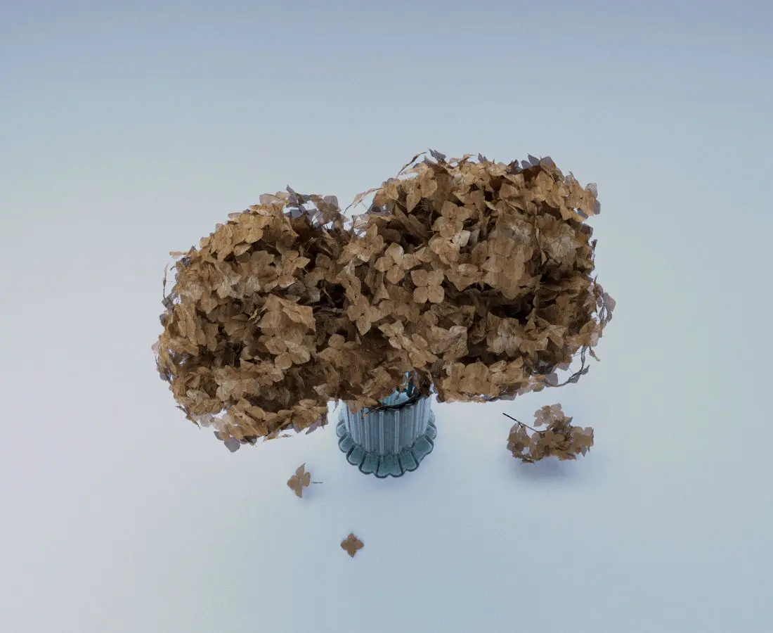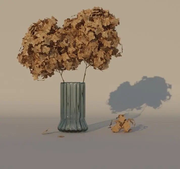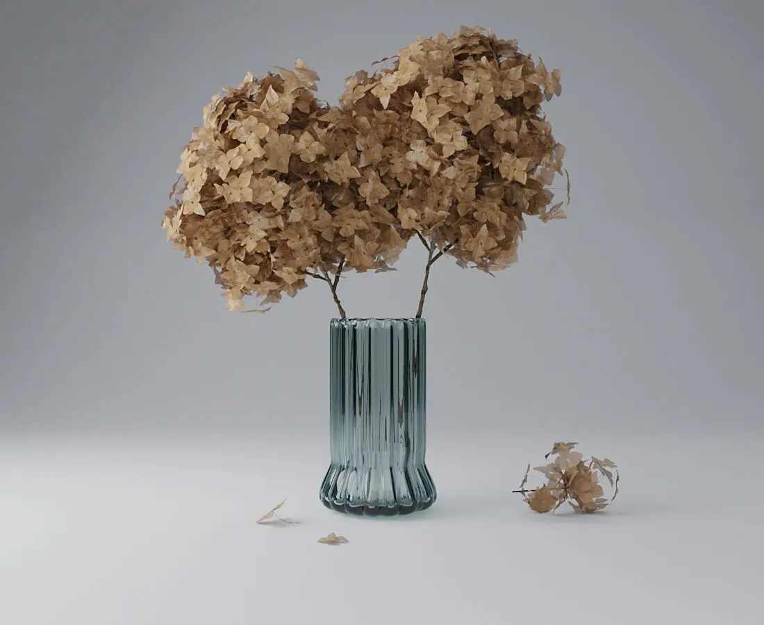 Models;-Dry hydrangea-Glass vase-Camera-Light-Scene