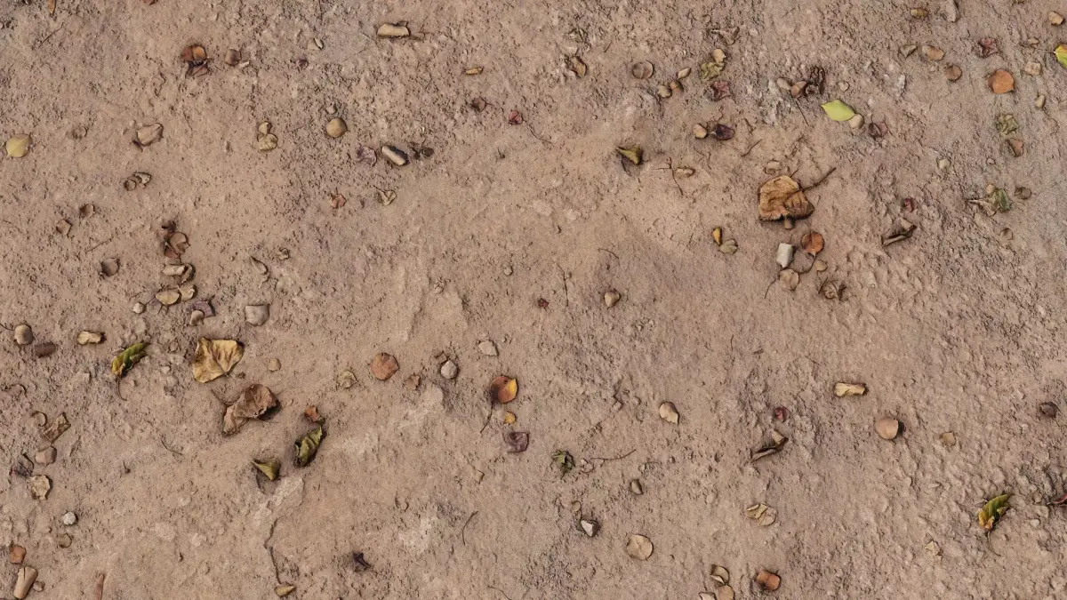 A high-resolution, photorealistic PBR texture of dry leafy dirt ground featuring scattered leaves, small pebbles, and realistic soil variation. Captured with photogrammetry to ensure natural depth, color accuracy, and detailed microtexture. Optimized for Unreal Engine, Unity, Blender, 3ds Max, Maya, Cinema 4D, and all major PBR workflows. Perfect for games, architectural visualization, environment design, and virtual production projects that need a realistic outdoor terrain or forest ground surface.