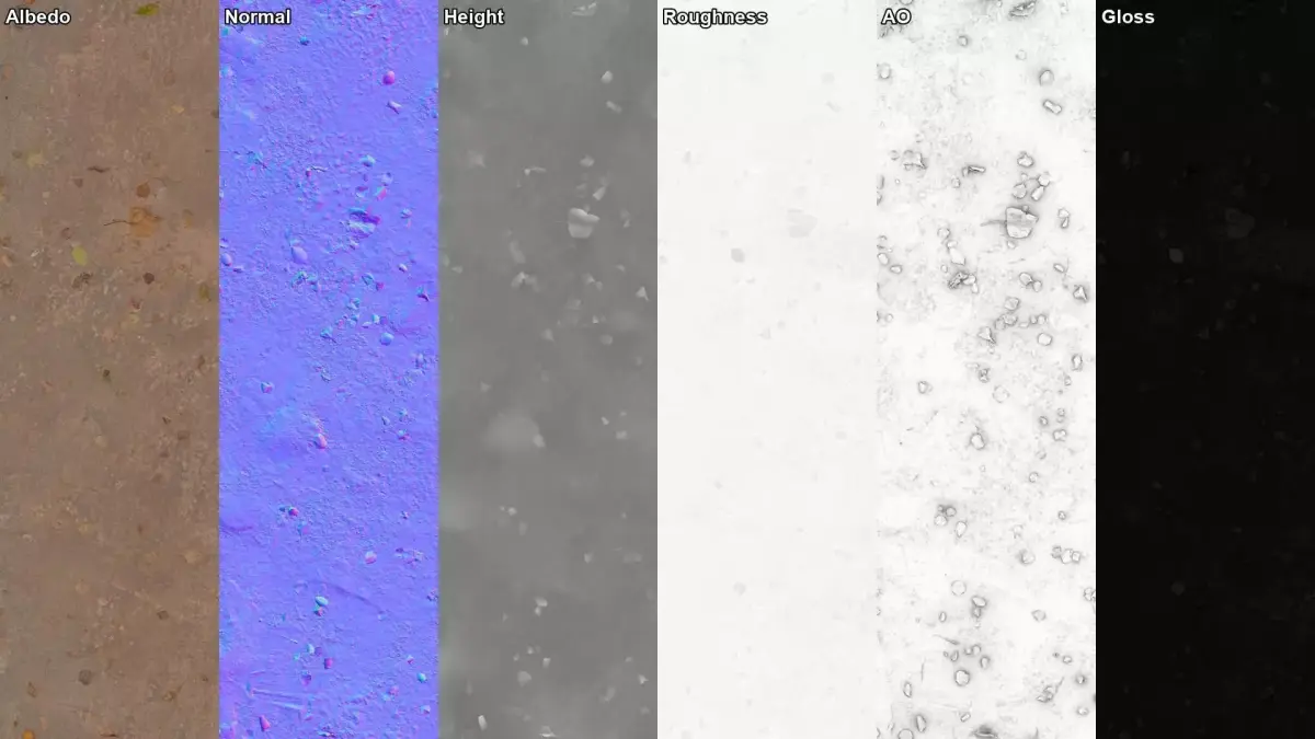 Maps: Albedo (lighting removed), AO, Glossiness, Roughness, Height, Normals