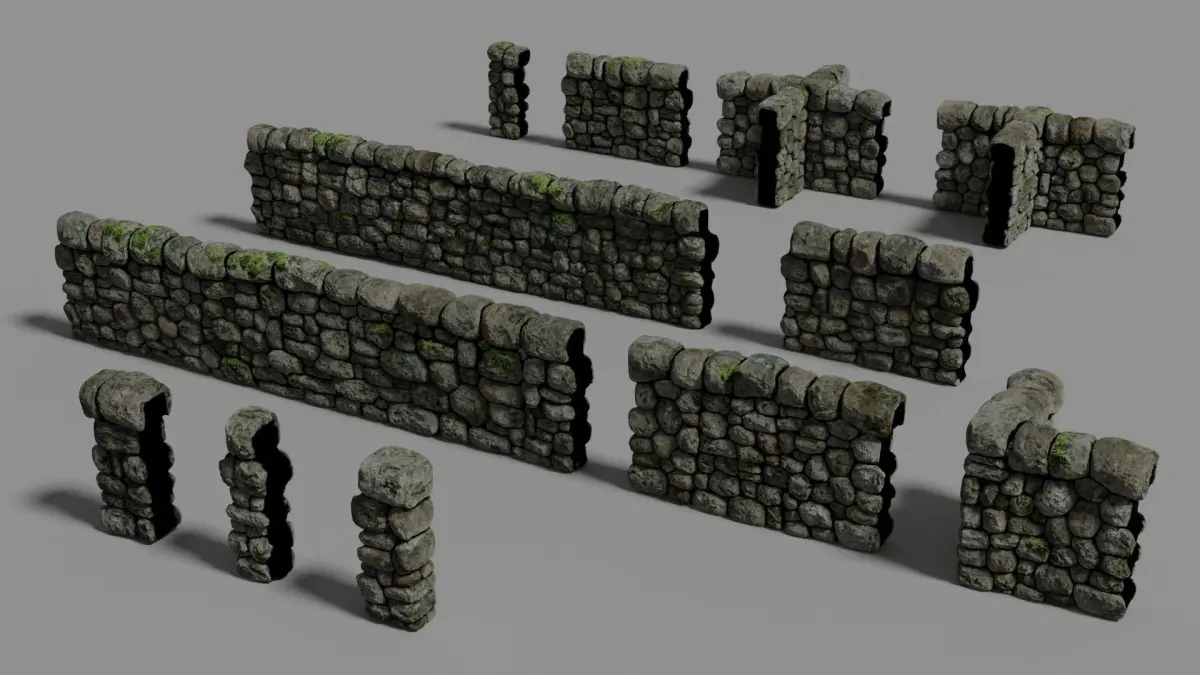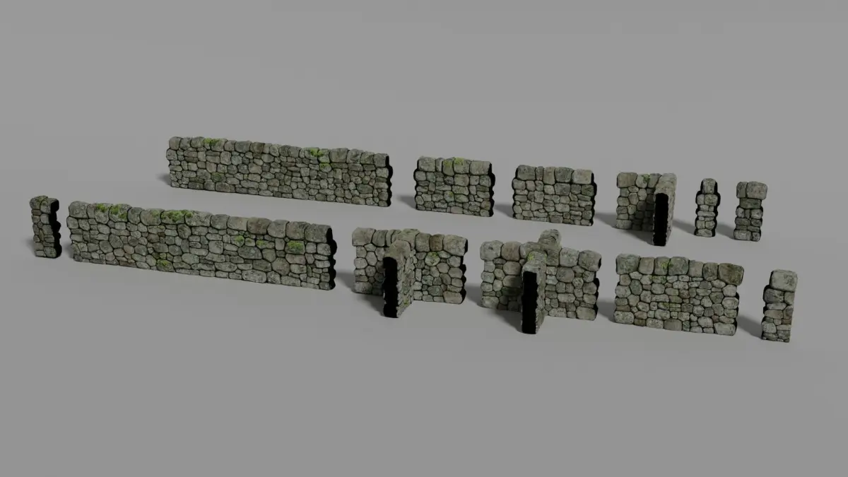 Modular drystone wall. Everything you need to build walls for both arch-viz and games. Buildable to a very large size with little or no repetition.